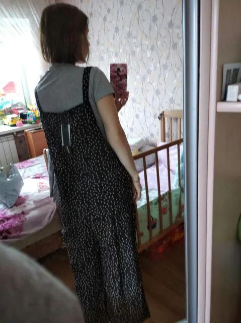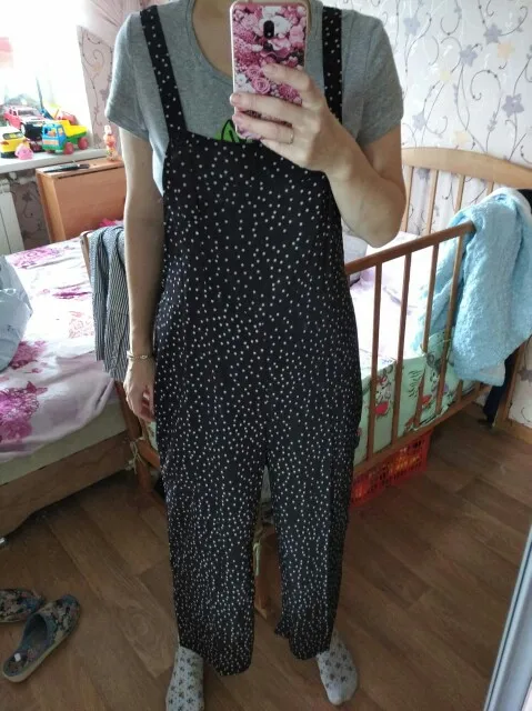 Super light summer overalls!!! Delivery быстрая-17 days, quality-pleasant synthetic type chiffon. Size L on my 46 approached well, freely (og 90, OB 100, height 170), length on the ankle, but adjustable by straps.