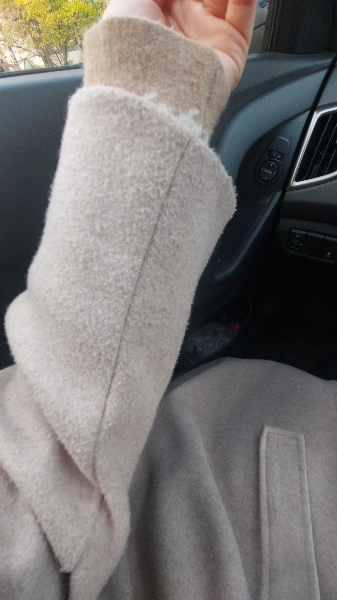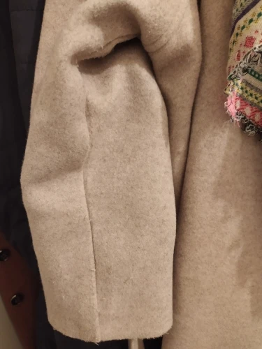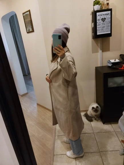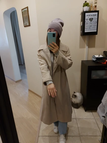 Soft coat, well sewn, dense, but not thick, on a warm autumn. sleeve 3/4 is designed to bend. My parameters: height 168 cm, weight 55 kg. Under the coat you can still wear a hoodie with fleece or another warm jacket. Let us see what happens when wear it.