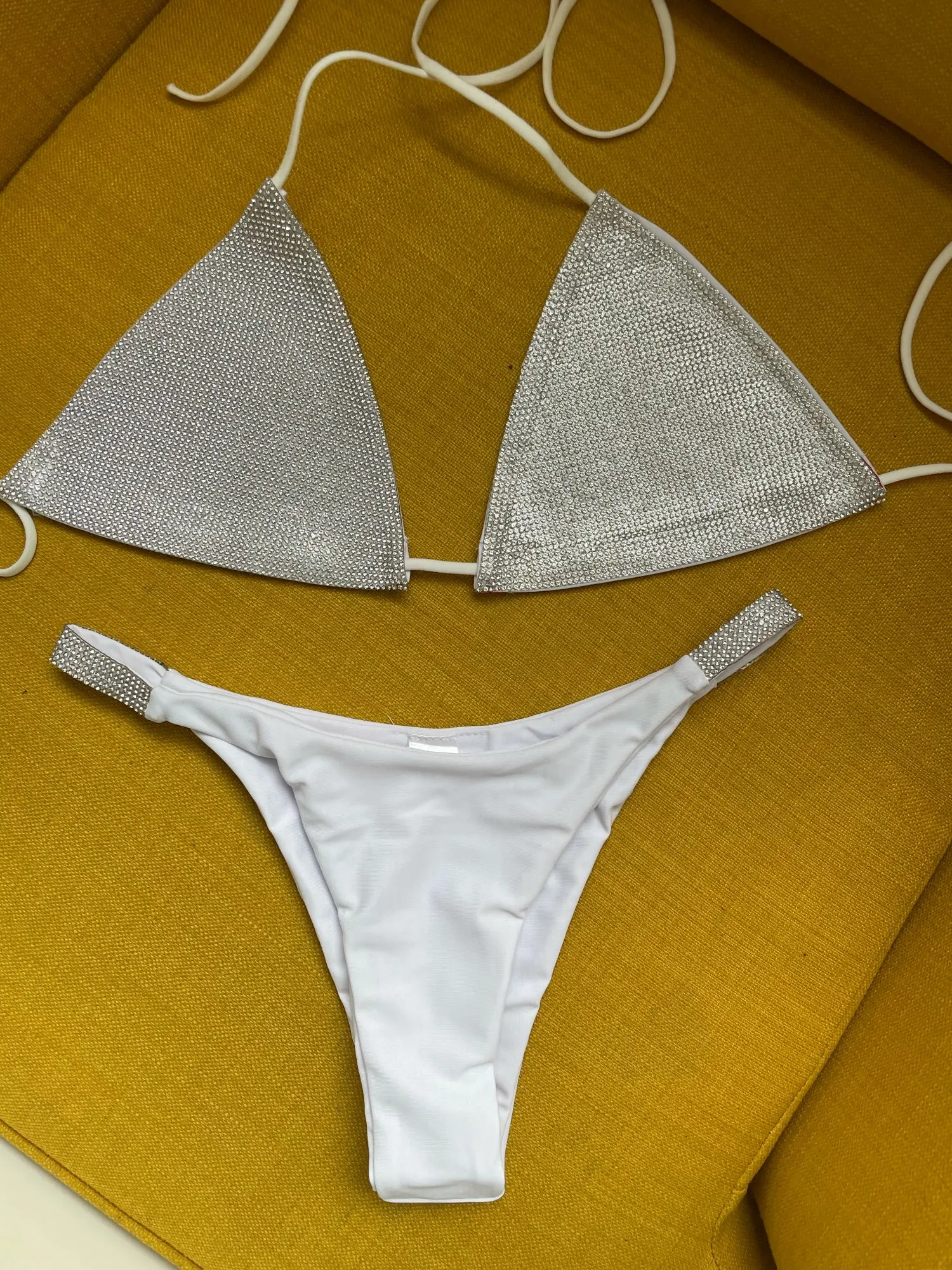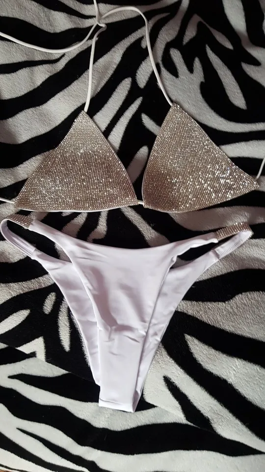 Luxury Bling Rhinestone Sliver Bikini Set