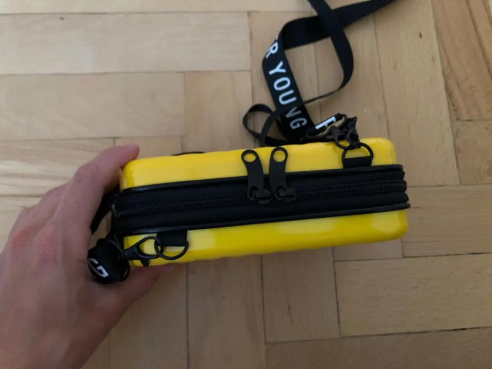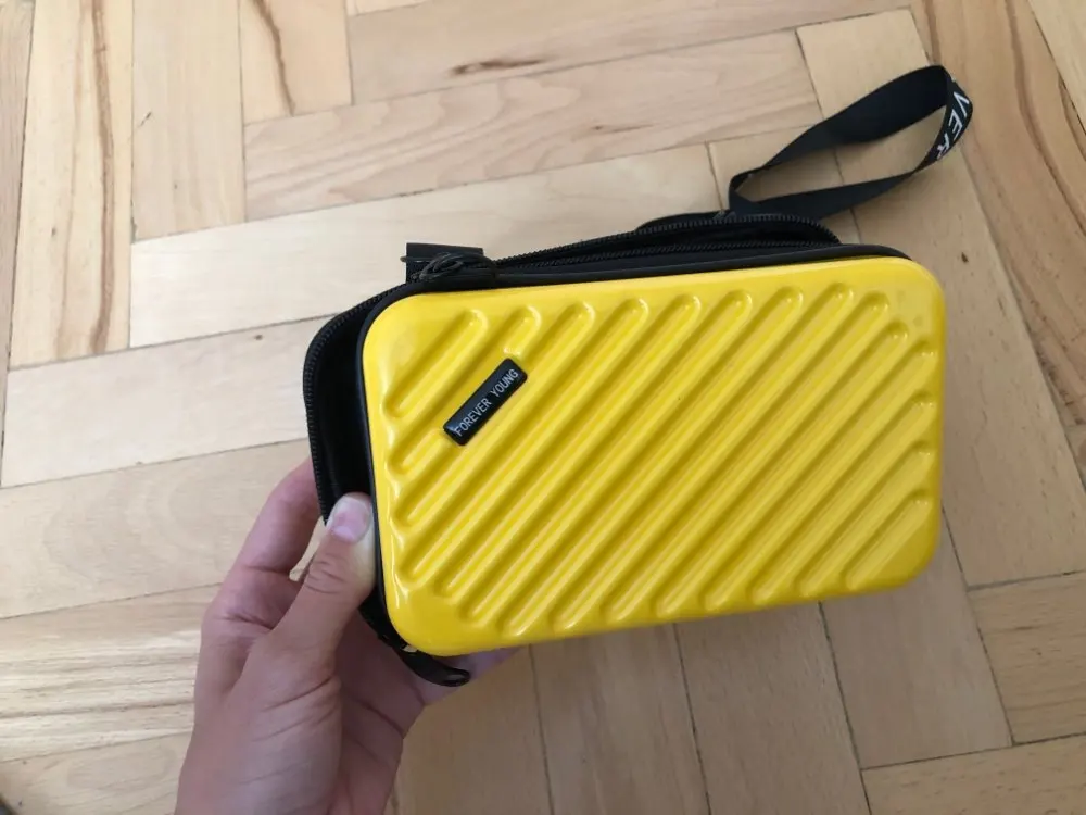 I thought it would be stronger. In appearance, a flimsy design) zipper is very easy to unnoticed to open! So make sure you don't steal it. Color saturated yellow, beautiful (more saturated than in my photos!). That's what I was waiting for. In general, I really like it, cool)) and much more roomy than I thought: the phone, wallet, passport, powder, lipstick, a pack of wet wipes are placed quietly. Inside is a long strap and short. On the rib is unstable, well, okay