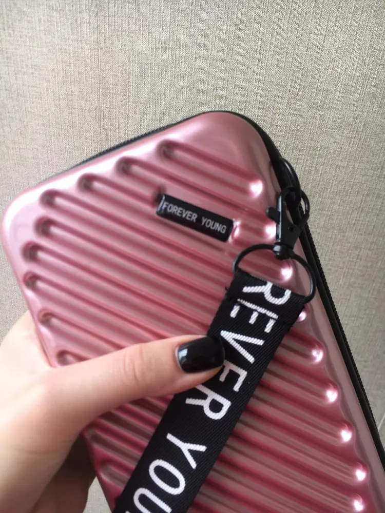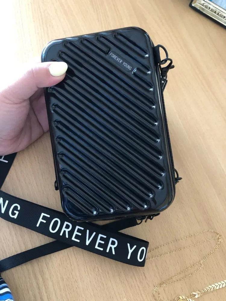 Beautiful handbag! Small, but the iPhone 8 Plus easily fit, there is an additional compartment for small things from two sides inside! Quality, well packed for delivery. Delivery 3 weeks to Ufa. Put a small gift, thank you!