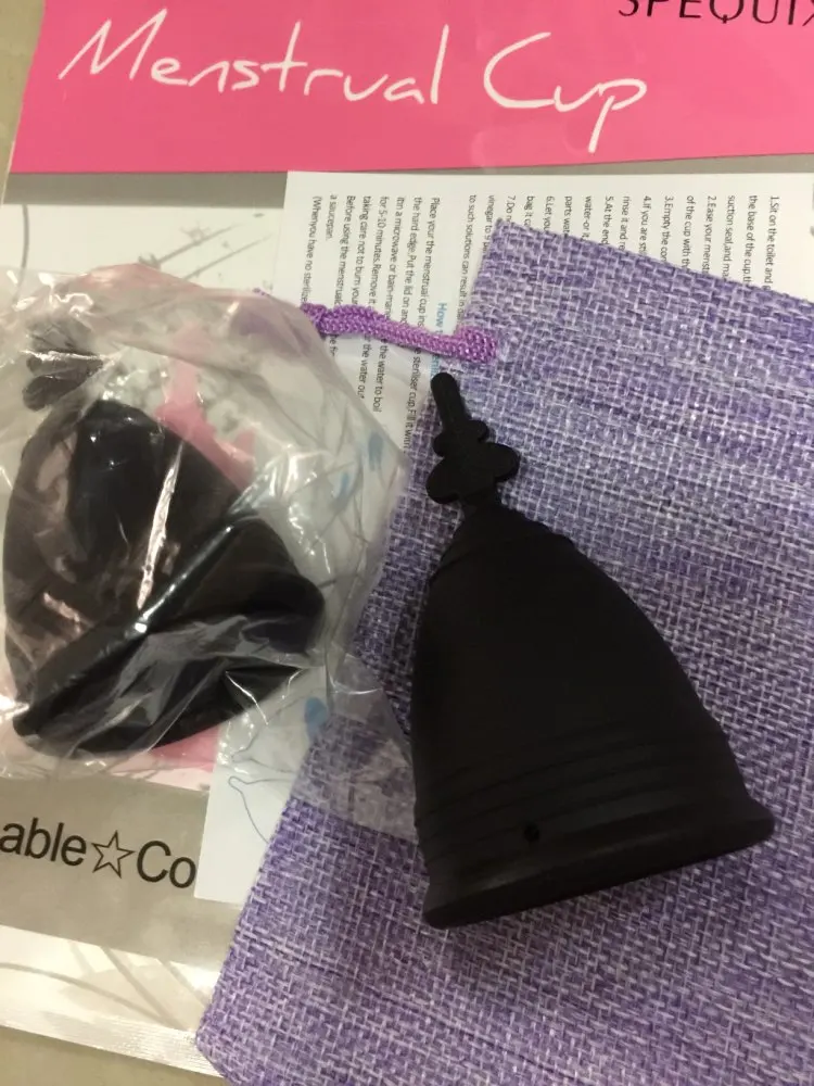 Why use these Menstrual Cups? 100% brand new Specialist brand 100% high-quality material Uses Medicinal Silicone so no chance for hurt to your body Size Guide: S: suitable for women who have not given birth to a child or women up to the age of 25 years. L: suitable for women who have given birth to a child or who are over the age of 25 years. The product is made of imported medical silica gel which is without irritation and absorption character and is widely used in health care products such as baby pacifiers, catheters, etc. This product does not contain dioxins and allergic substances meanwhile there is no peculiar smell and wet situation while using and daily activities are not restricted during its valid for a 10 year period! Specifications: Item Type: Menstrual Cup Material:100% Silicone Colour: Black, Blue, Pink, Grey, Purple, White Capacity Size S: 20ml Capacity Size L: 25ml Feature: Healthy, Safe, Easy to use, Environmentally friendly Size S Of Menstrual Cup: Outer diameter:1.57inches/Cheight:2.76inch Size L Of Menstrual Cup: Outer diameter:1.77inches/Cheight:3.15inch Package 1: 1pcs L or S Menstrual Cup + Cloth Bag + Instructions Package 2: 2pcs L or S Menstrual Cup + Cloth Bag + Instructions Package 3: 1pcs L and 1pcs S Menstrual Cup + Cloth Bag + Instructions Disinfection: Clean the menstrual period cup with warm water and soap. First with boiling water or disinfectant. Disinfection recommendations; Boiling water: a container filled with boiling water for 2-5 minutes. 蝴蝶月事杯主图1蝴蝶蓝色尺寸图04黑月事杯使用步骤月事杯尺寸推荐表 001粉色场景图灰色场景图紫色场景图黑色场景图蓝色场景图 How To Use? 1.Before handling the Menstrual Cup, make sure that your hands are thoroughly clean. 2.Sterilize the Cup before the first insertion. 3.Recommend to insert the cup by any of the following positions: sitting, squatting, kneeling or standing, try one of these positions and choose which is the most suitable for you. 4.To facilitate the insertion, you can moisten the Cup with water or lubrication gel if necessary. 5.Grip the Cup with your fingers and press. 6.Afterward fold the Cup lengthwise in half using fingers of the other hand. 7.Hold the Cup using fingers of one hand at the possible lowest position. 8. Insert cup in the vagina obliquely, towards the back. 9.The proper position of the Cup is lower than tampons. Upon insertion in the vagina, release the fingers and let the Cup unfold fully and adhere to the vaginal wall. 10.You can disinfect before and after using it. Matters needing attention : No allergic reactions so it does not lead to mould and urinary tract infections. Can apply to all women, but women who have no sexual experience are not recommended to use this product. Capacity description: S size Menstrual cup is suitable for Normal flow. L size Menstrual cup is suitable for Heavy flow. We recommend that you buy two different sizes of menstrual cups to handle different menstrual conditions.