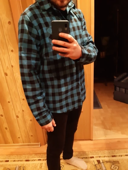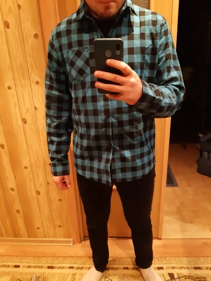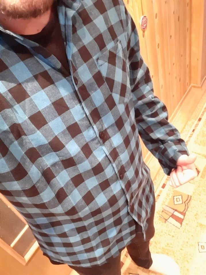 Nice, light shirt. Well-sewn. Approached the Russian 46-48. Wear only over jeans or pants because the length does not allow you to fill. But that's what we wanted. So the shirt is cool. The color is bright, the threads do not stick out, the buttons are sewn well.