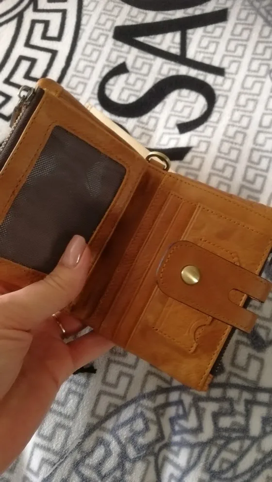 It came about a month. the store is responsive! good price-quality ratio! for a gift-excellent! cool that the middle is unfastened, but keeps tight at the same time. Soft leather. Russian bills are placed. there are 2 buttons, it allows you to fill the wallet and fasten it. I recommend!