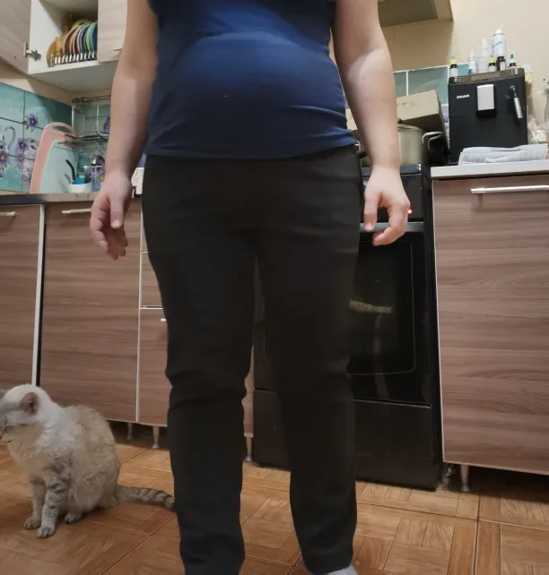 Everything is fine, only the fabric of the trousers itself does not stretch almost. For the abdomen is a good stock. But in the hips now already butt. If you slightly increase in size, that with the growth of the abdomen inevitably)) in the hips they will be small. Delivery almost 2 weeks