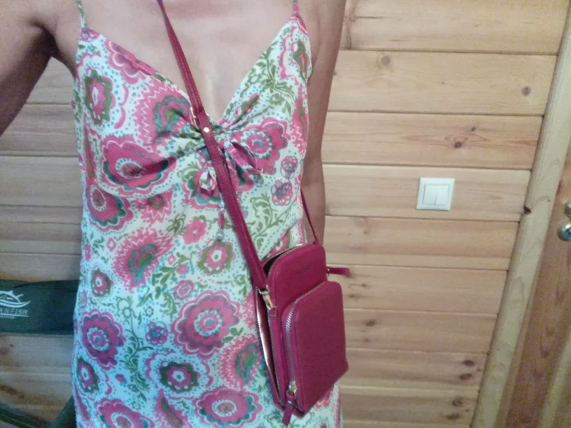 Suddenly it came quickly. The quality is excellent. Phone, documents, credit cards perfectly fit. Female version of the bar. What I needed. Recommend.
