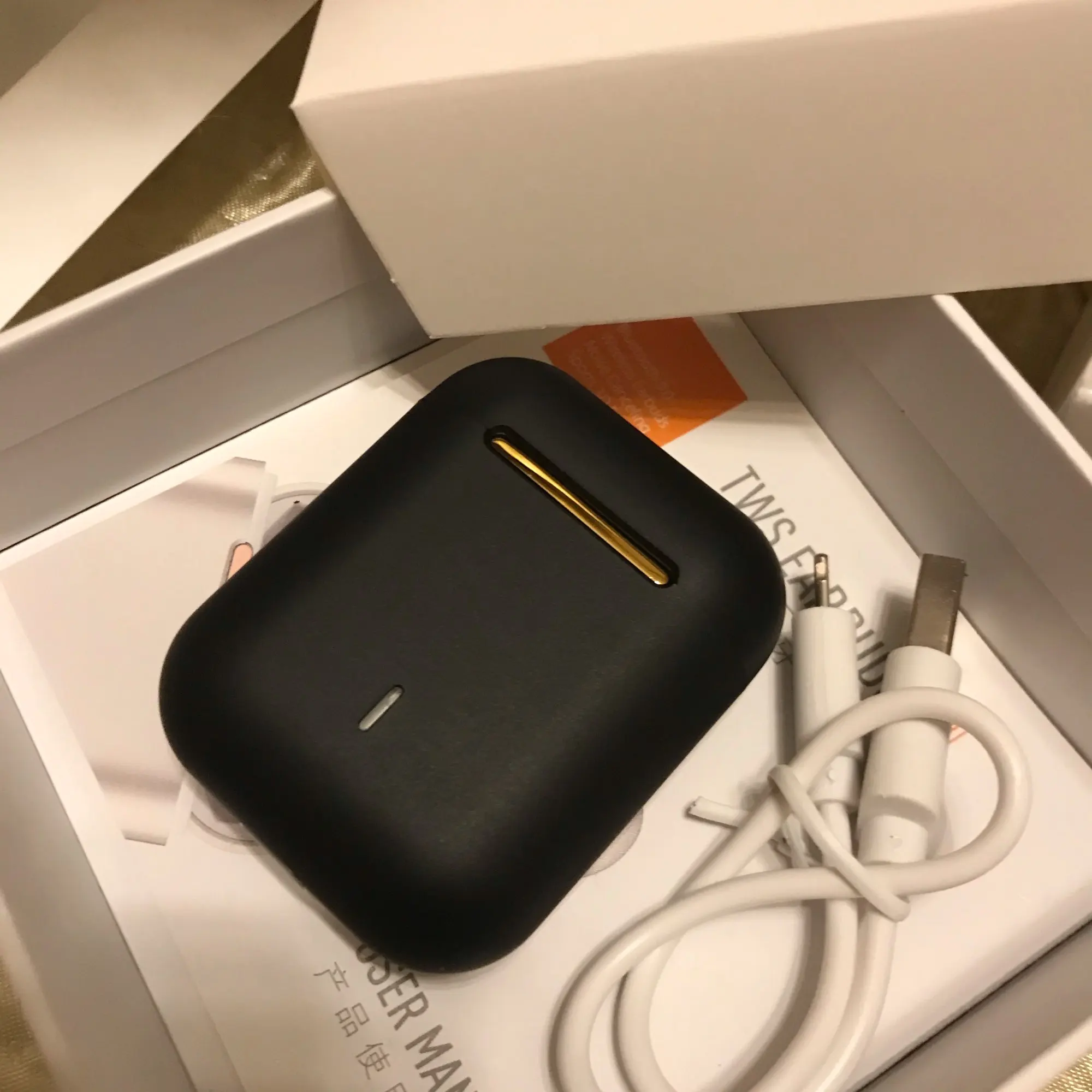1. Due to long-term transportation, the earphones and charging box may be out of power. After receiving the goods, please charge them before use, thank you. 2. MUST Use 5V/1A Cable to Charge the Next Generation Bluetooth Earphones Charging Case.