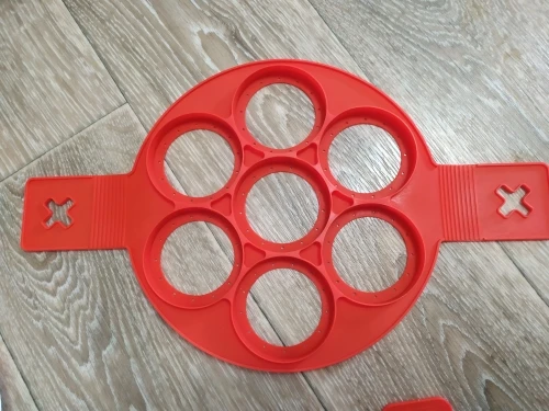 Nonstick Cooking Mold Kitchen Tool Pancake Maker Egg Ring Maker Silicone Nonstick Kitchen Cooking Tool With 4/7/10 Holes Features: Silicone material, it is soft and corrosion resistance. It can be used circularly, durable and low energy consumption. It has a stable structure and mechanical properties, so it has a wide range of temperature resistance. With corrosion resistance of detergents and other types of corrosive substances. It is suitable for cooking and baking. Specifications: Color: Red Material: Silicone Size10holes : approx. 41.5x18.3x1cm/16.33x7.2x0.39in Size4holes: approx.35cm/13.78" X16cm/6.24in Size7holes: approx. 39x23x1.5cm/15.35x9.05x0.59in   Notes: Due to the light and screen setting difference, the color of the item may be slightly different from the pictures. Please allow slight dimension difference due to different manual measurement.   1 x Pancake Maker
