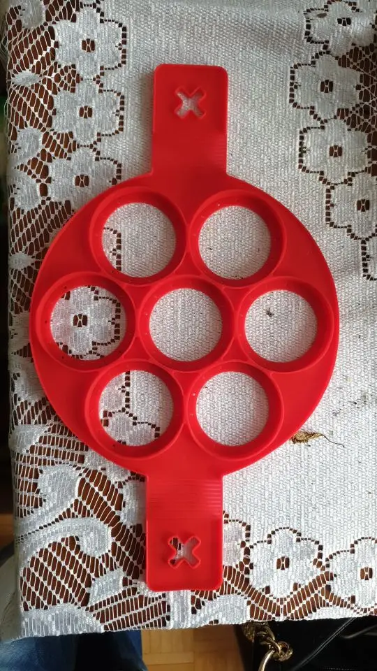 Nonstick Cooking Mold Kitchen Tool Pancake Maker Egg Ring Maker Silicone Nonstick Kitchen Cooking Tool With 4/7/10 Holes Features: Silicone material, it is soft and corrosion resistance. It can be used circularly, durable and low energy consumption. It has a stable structure and mechanical properties, so it has a wide range of temperature resistance. With corrosion resistance of detergents and other types of corrosive substances. It is suitable for cooking and baking. Specifications: Color: Red Material: Silicone Size10holes : approx. 41.5x18.3x1cm/16.33x7.2x0.39in Size4holes: approx.35cm/13.78" X16cm/6.24in Size7holes: approx. 39x23x1.5cm/15.35x9.05x0.59in   Notes: Due to the light and screen setting difference, the color of the item may be slightly different from the pictures. Please allow slight dimension difference due to different manual measurement.   1 x Pancake Maker