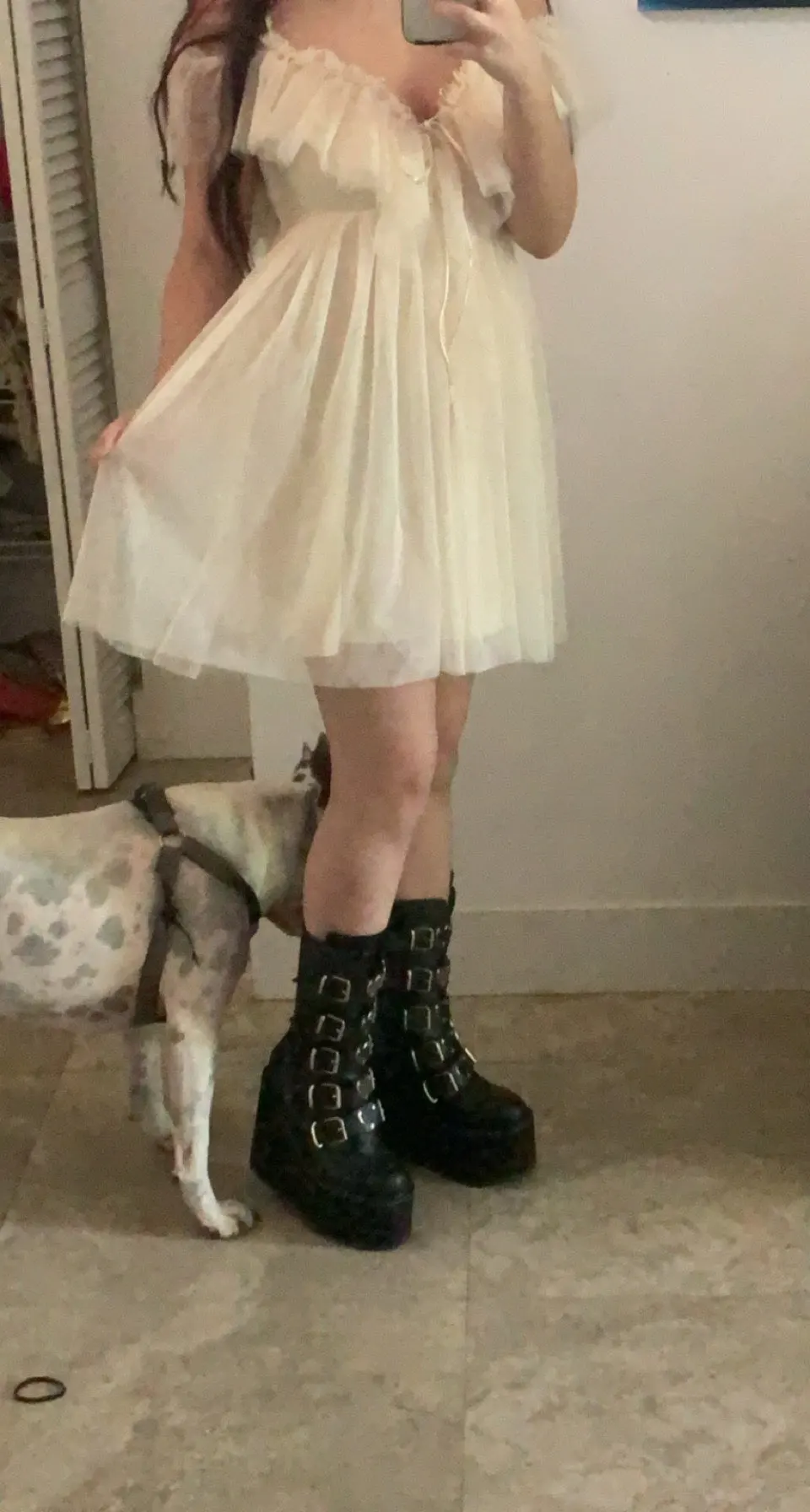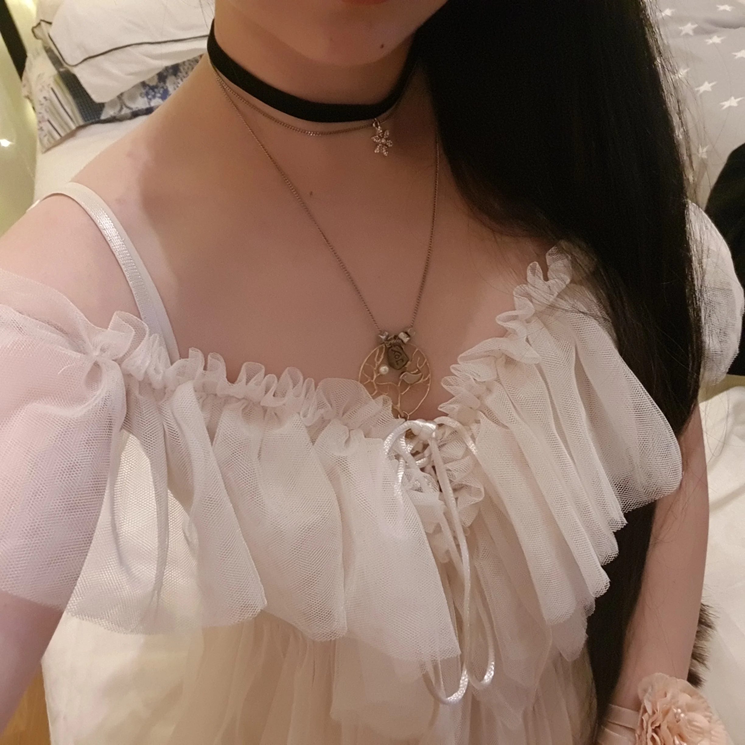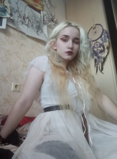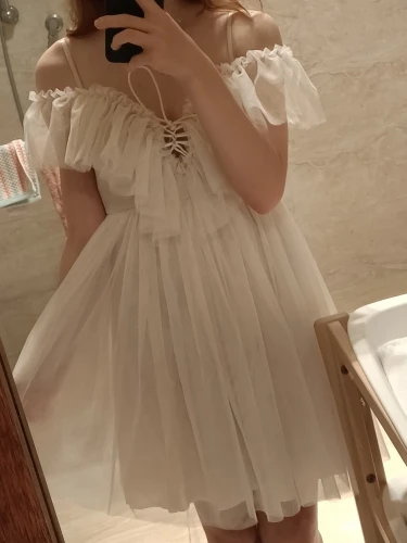 Yellowish and slightly shines through, but if with white underwear, then normally. I ordered at the prom, the waist in it is not particularly visible. In general, I liked it, it sits cute