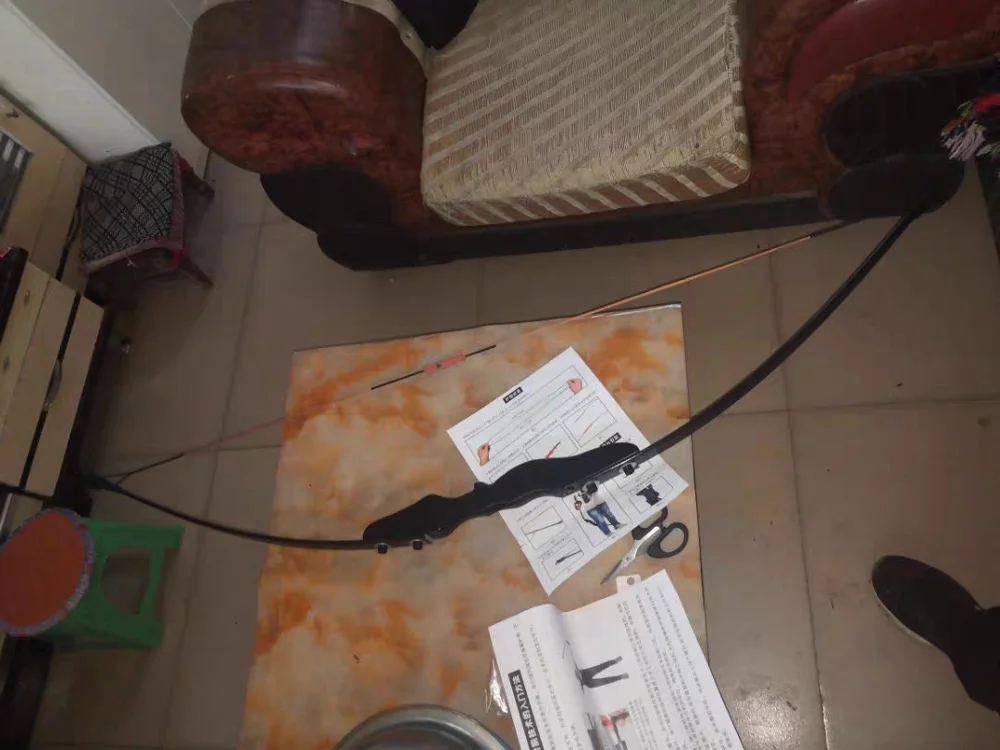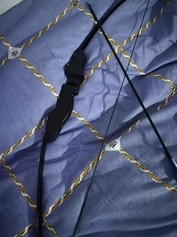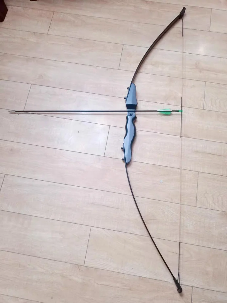 Bow Description : Bow limbs material: Guomu Bow handle material: High strength fibre bow piece Bow length: 51 inches Pounds: 30/40 pounds Weight: 900g Upper and lower bow length: 61cm Packing size: 61*10cm