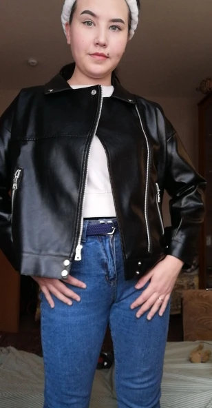 The jacket is super! Exactly what I wanted. I usually wear m. Leatherette is very pleasant to the touch, soft, but in moderation. In general, I advise!!!! With the store did not communicate
