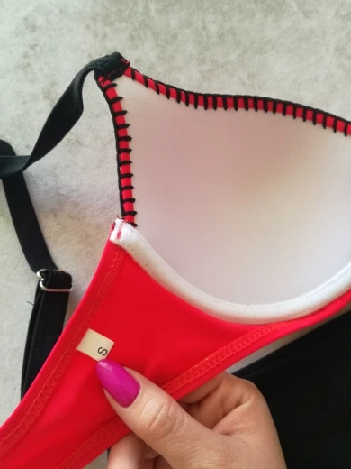The parcel went about 17 days. The swimsuit is very satisfied, as in the picture, the quality is excellent. The color is bright, juicy, I hope so and will remain after washing) the fabric on the panties is double. At its size 42 (80 V) ordered the size S, the panties are a little too small. In general, the swimsuit is decent, looks expensive, I recommend to buy!