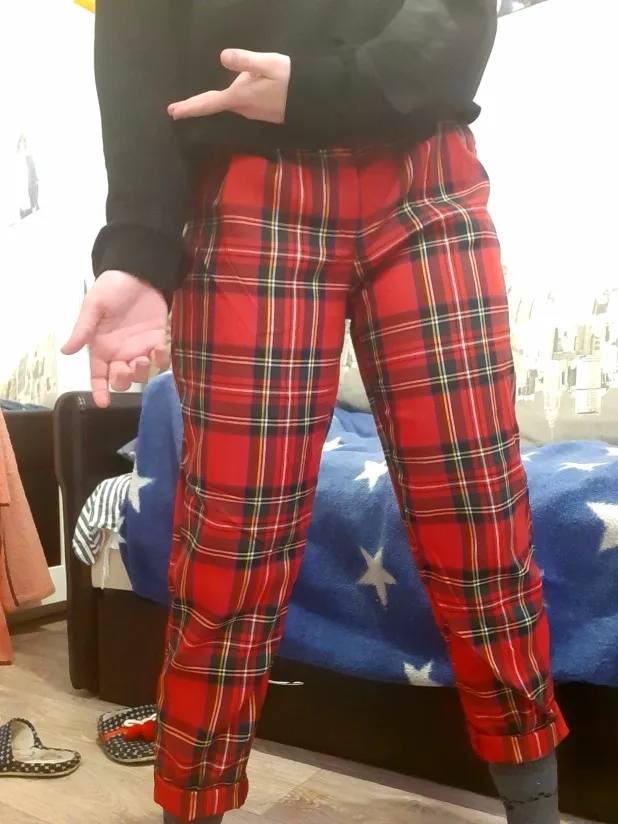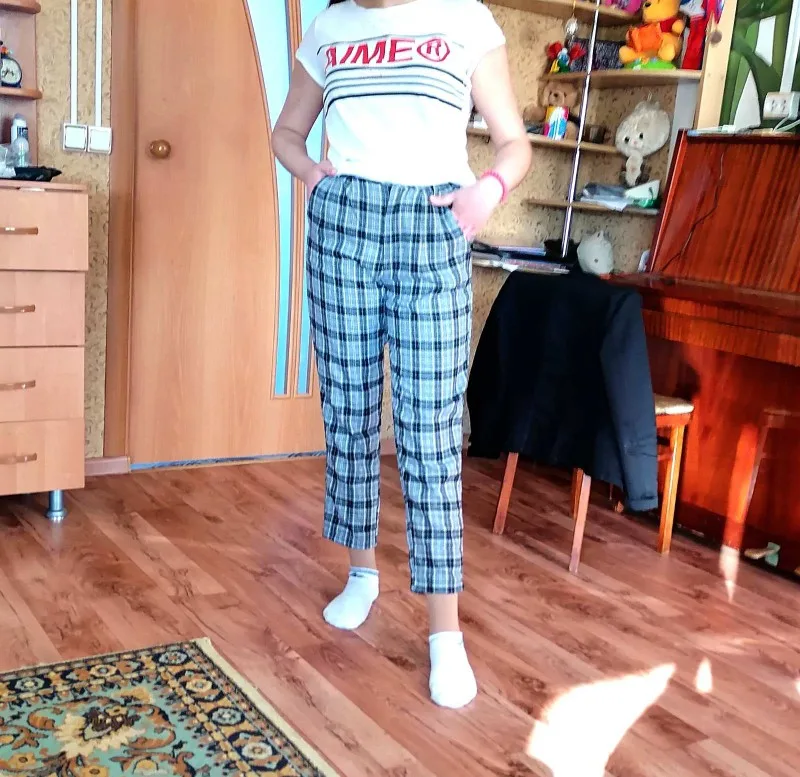 Came very quickly, ordered for 11.11 came 26.11. In Yekaterinburg. There was a lot of thread, but it's not critical. Dense material, does not stretch. There are pockets, a black button and a red zipper, works properly, slots (5 pcs.) Took S as the smallest size, on the height of 150 cm sat perfectly, but at the waist hang out, therefore, without a belt can not do. I'll put it in order and wear it, I'll add my feedback to the photo on me and the images. The goods are good, for a long time about such dreamed. Recommend.