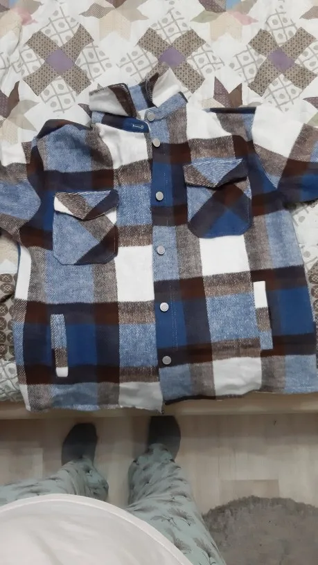 The shirt matches the description. The sleeves are a little short. You can wear it as a summer jacket, and in winter as a warm shirt. Came in 12 days.