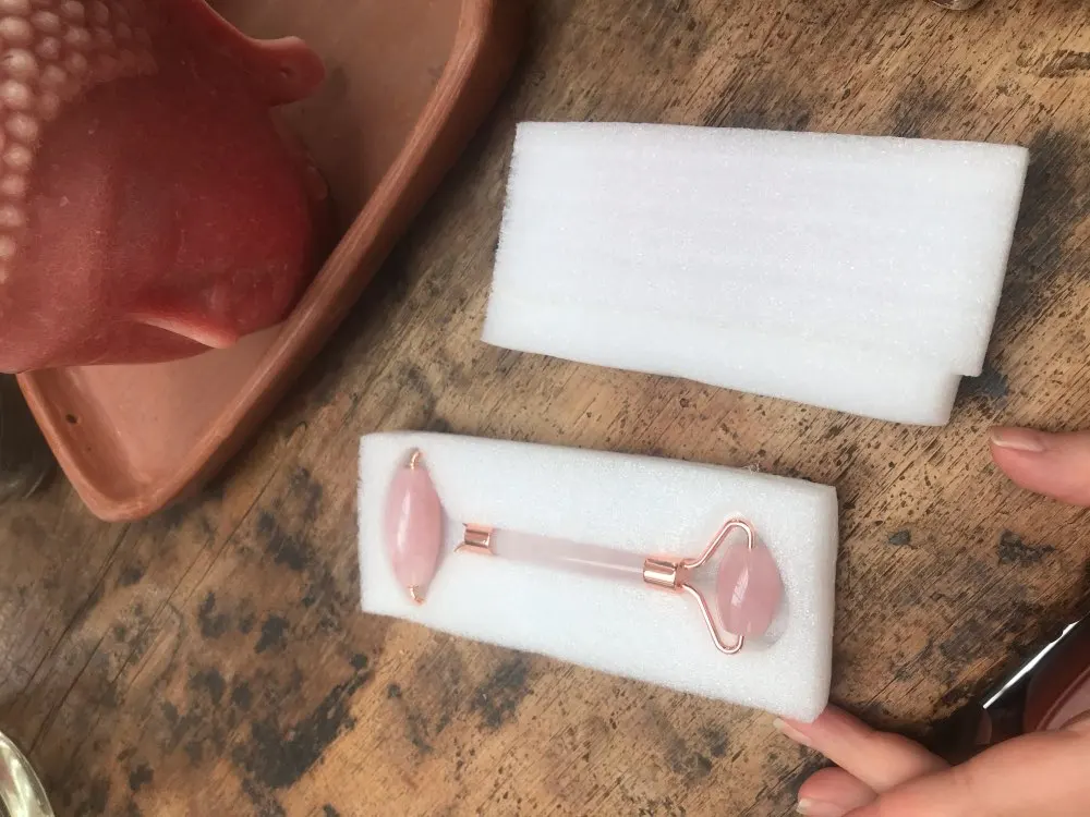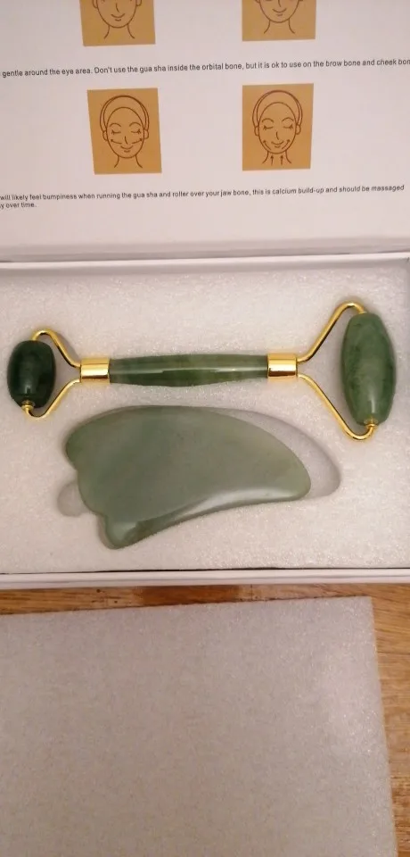 There is an old story saying that thousands of years ago, the Empress of China used a roller made of jade to maintain her youthful appearance and radiance. The semi-precious stone considered a symbol of beauty, grace and longevity has long been revered in the east for its mystical powers. Honestly, we can't change our age, but we can definitely change the way of our look in different ways. Develop a healthy lifestyle and using some beauty tools, like Jade roller. Jade remains cool to the touch (even in warm weather) and can help provide anti-ageing benefits. Rose Quartz Roller anti-ageing Benefits 1. Relieves facial tension 2. Enhances skin elasticity tightening and toning the skin 3. Discourages the appearance of fine lines and wrinkles 4. Reduces puffiness, eye bags and dark circles around eyes 5. Helps penetrate beauty products like face creams and serums deeper into the skin for better absorption 6. Promotes blood circulation to the face for a natural healthy glow How to use 1. Wash face with normal cleansing products. 2. Apply any night creams to your face and neck. 3. Use upward motions to move the Jade roller gently over your forehead, cheeks, around the lip area and neck. Close your eyes and roll gently over your eyelids if you have puffy eyes or bags under your eyes. 4. Use the roller on your face and neck for 5 to 10 minutes. 5. Use the Jade roller three times a week to reduce lines and wrinkles. 6. Clean your Jade roller according to the instructions. Special Tips: 1. Each one is not the same in the colour, jade pattern, thickness, it is normal. As this item are carved processed by natural stone. 2. As you know the jade facial roller is fragile, easy to be damaged in transit, though we pack it very carefully. If you receive the broken roll massager, please contact us for a new one