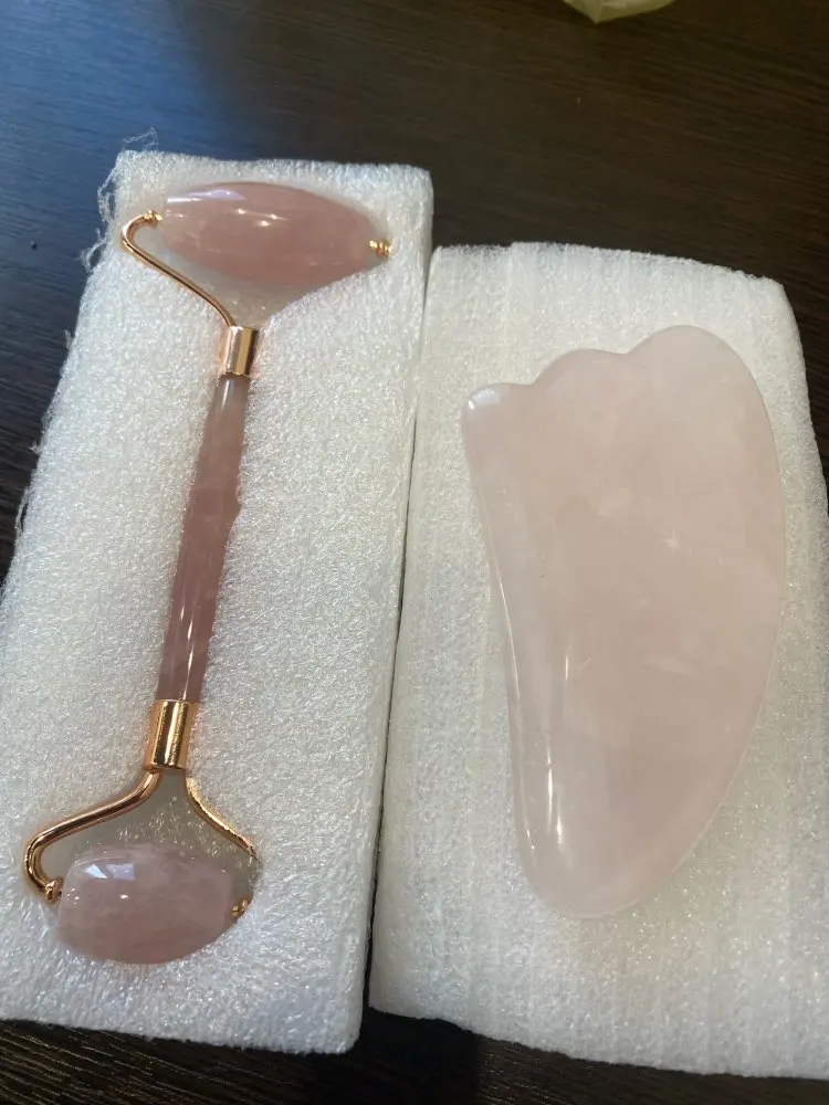 Radio Enjoy Natural & Healthy Massage - Jade roller is made of 100% natural jade stone. Anti-ageing, anti-wrinkles line, Reduce dark under eyes, better skin and health without any chemicals or irritants Radio Dual Sides Rose Quartz Roller- The big roller is ideal for neck, chin, cheeks, and forehead while the smaller is perfect for around the eyes, nose, and lips. The roller promotes blood circulation, which can reduce puffiness and wrinkling Radic Gua Sha Rose Quartz Stone - There is one rose quartz healing stone in the package too. It is a very good jade gua sha scraping tool, great for using on your body and much helpful to relieve pressure, always with a relaxative and graceful mood Radio A Meaningful & Special Gift - Give the special one a gift of love. The nephrite jade roller comes in a beautifully designed package, which can be a meaningful gift for elder, mom, grandma, wife, daughter, sister