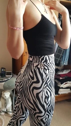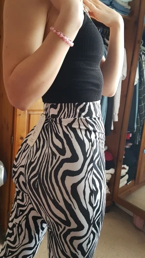 I’m in love with these pants, very elastic so it fits perfectly to the body, not see through! If you’re hesitating, don’t !! Go buy it, you’ll look gorgeous ( I’m 1.53m for 80kg and it’s fits perfectly in L)
