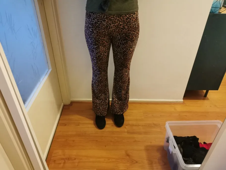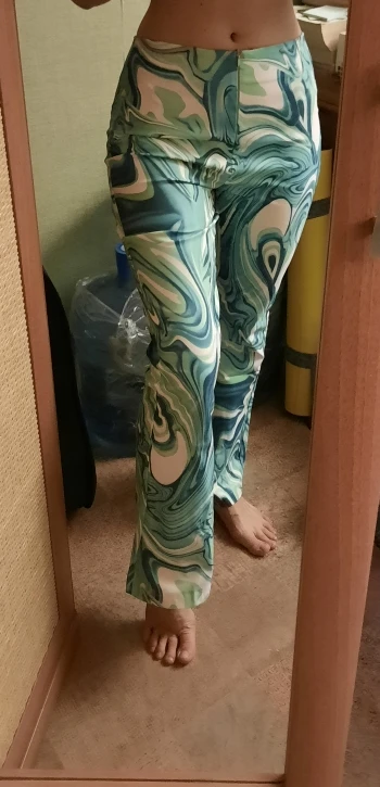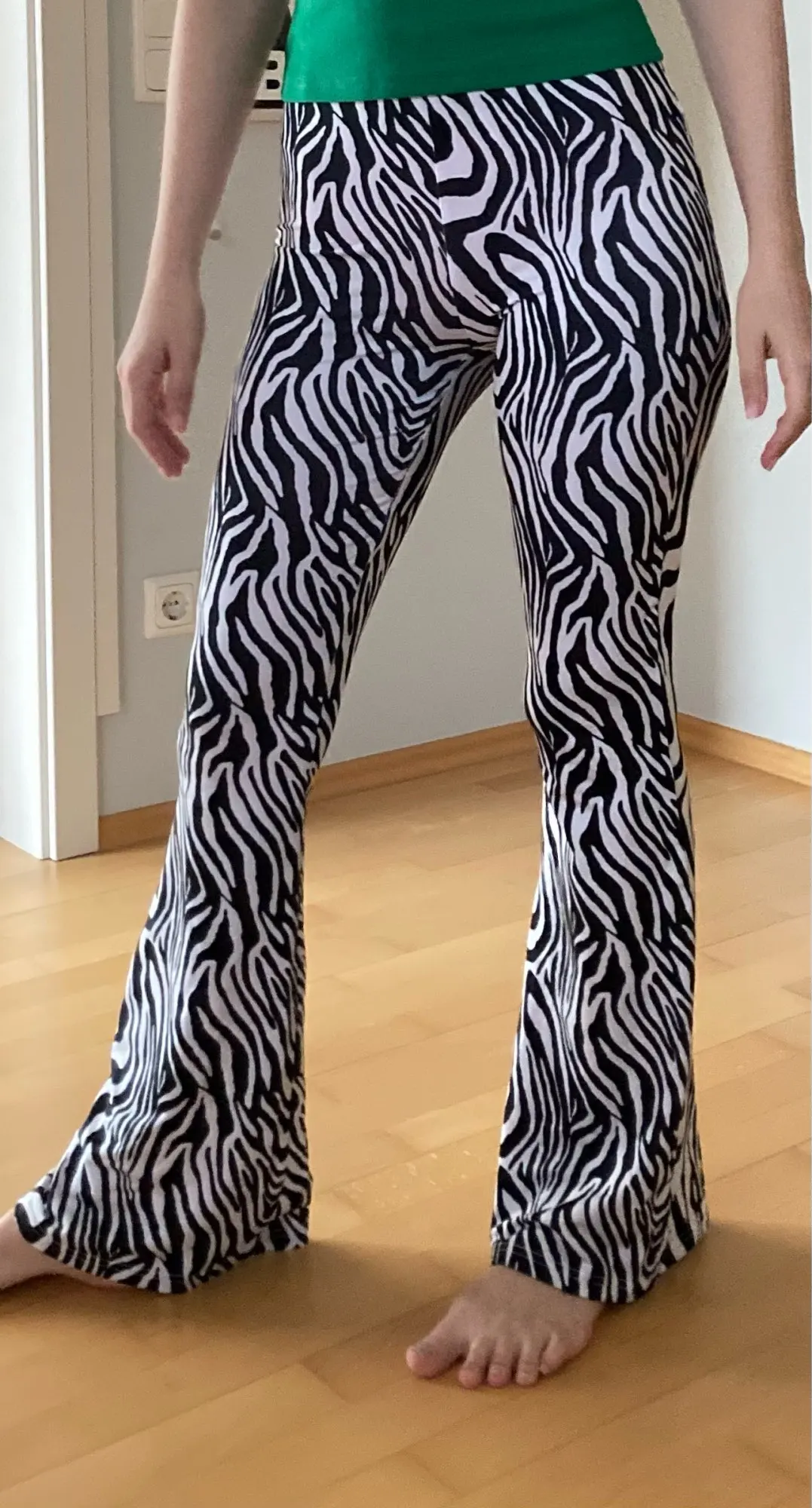 Very nice pants. Soft and stretchy material. Has a black inner lining. On my height of 169 cm the perfect lenght. It's a high waist. Size M was perfect for my normal size M. Only thing is that the outer layer goes up a bit and so you see the inner black lining.