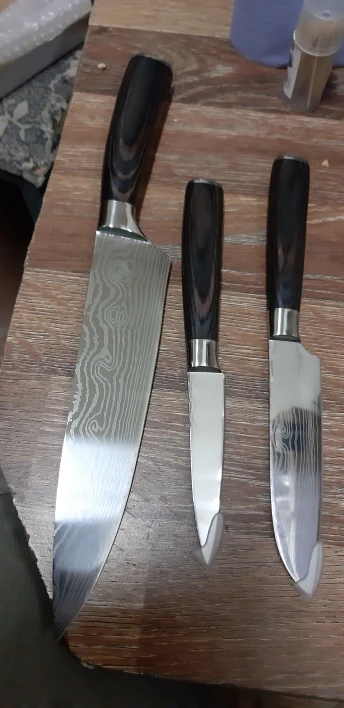 Nože jsou VE Velmi pěkném provedení, odpovídají popisu. Jsem spokojený, Velmi pěkný dárek for narozeniny. Mám jedinou výtku and it že všechny nože mohli být opatřený plastovým krytem kvůli očastnému přenášení. Nejenom one, coš mě mrzí. For posledním Fotu pro porovnání, jíný prodejce...