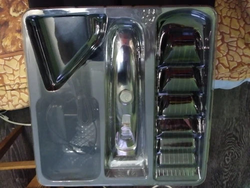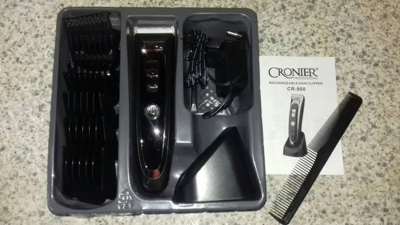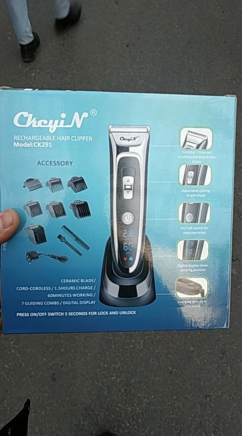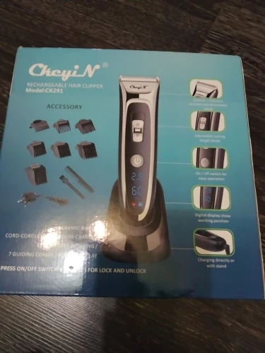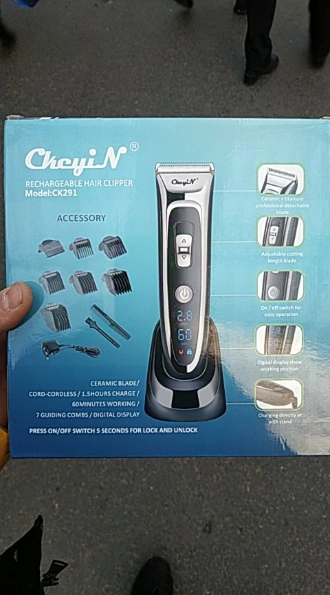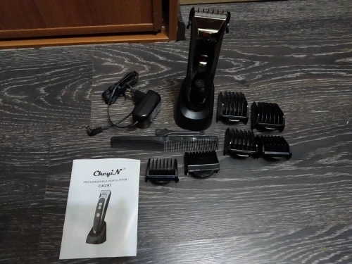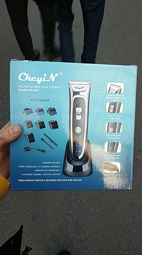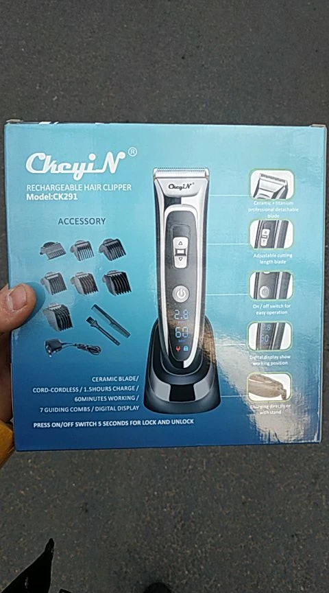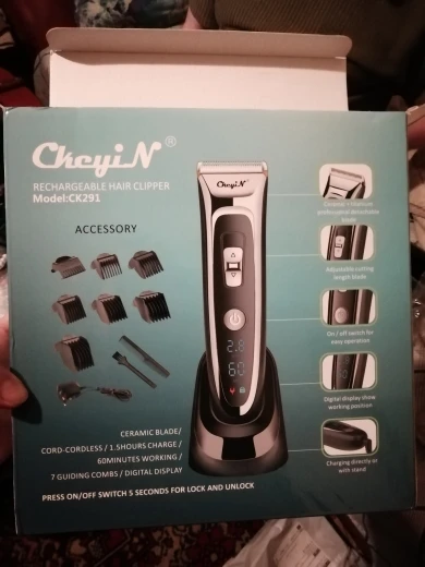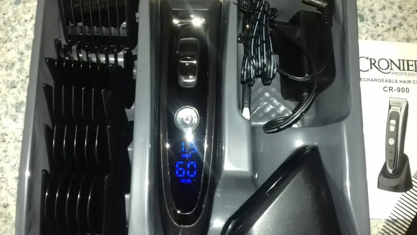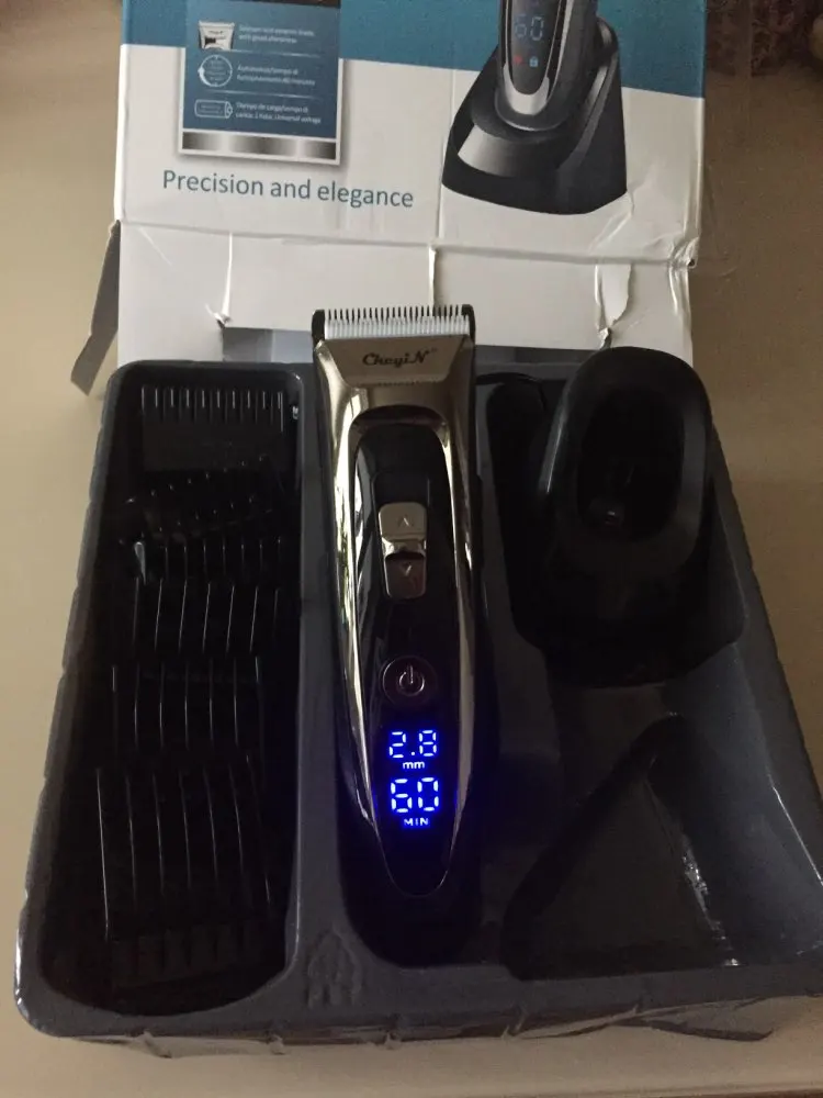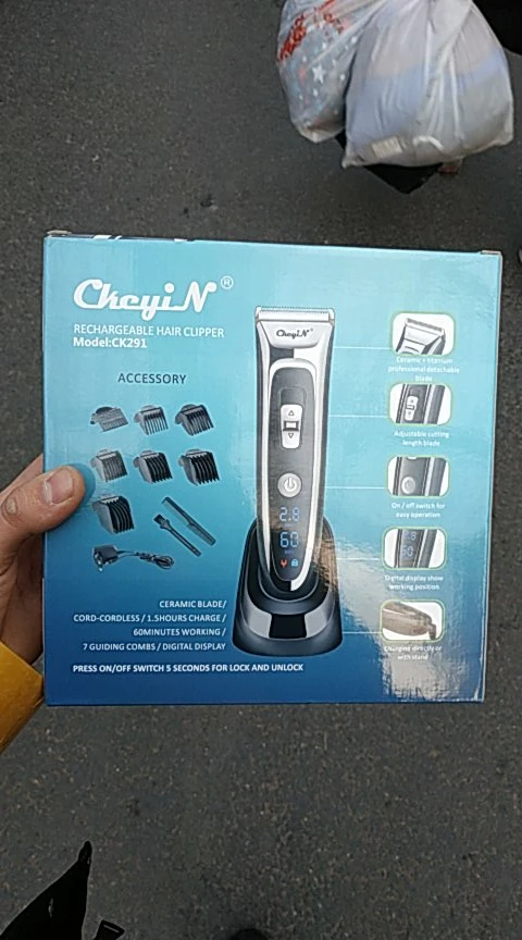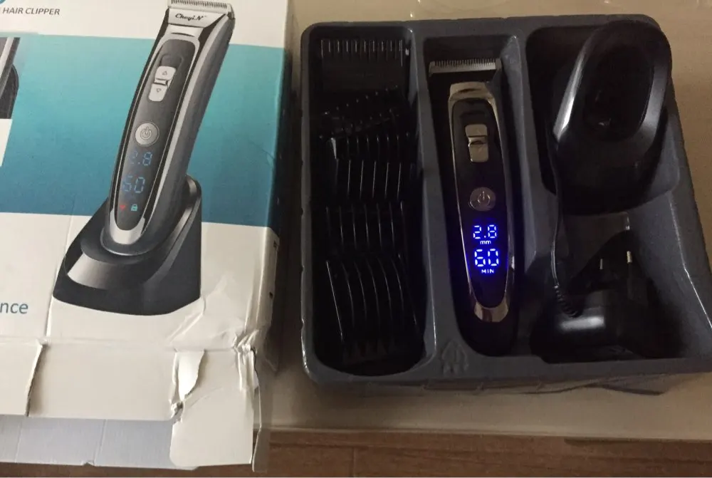 Titanium and ceramic professional detachable blade, high precision and can be washable. Sharp blade and powerful motor, can trim your hair fast, no hair gets stuck and no hurt to your skin. Low noise design, there is no ear-piercing sound, nor disturbing others during operation. Adjustable cutting length blade switch for fine-tuning from 0.8mm-1.5mm-2.2mm-2.8mm, which can create different hairstyles. 7 comb attachments help you trim easier and more accurate. Built-in 600mAh Li-ion battery, fast charging, after 1.5 hours full charge, it can be used continuously for 60 minutes. Cord and cordless dual use, 100-240V dual voltage and easy to carry, can be used in travel. Perfect for men, also for kids, the elderly, professional barber, and etc. Note: International transport does not allow liquids, shipping does not contain lubricating oil. The body and the adapter are not waterproof, only the blade, the comb attachments can be removed and washed with water, be sure to let them dry before using them again. Specification: Body material: Stainless steel + ABS + LED screen Blade material: Titanium + Ceramic Input: 100-240V 50/60Hz Output: DC 5V 1000mA Power: 3W Battery: 1 x 3.7V Li-ion battery 600mAh Charging time: 1.5 hours Using time: 60 minutes Color: Black Hair clipper size: 18*4.5*4.5cm(Length*Width*Thickness) Base size: 6.5*7.3cm(Length*Height) Weight: 378g Package Content: 1 x Hair clipper 1 x Thinning comb 6 x Limit combs(4-6mm / 7-9mm / 10-12mm / 16-18mm / 22-24mm / 28-30mm) 1 x Comb 1 x Cleaning brush 1 x Base 1 x Adapter 1 x User manual(Multiple language) Shipped from Singapore, packed with safe bubble bag, no box