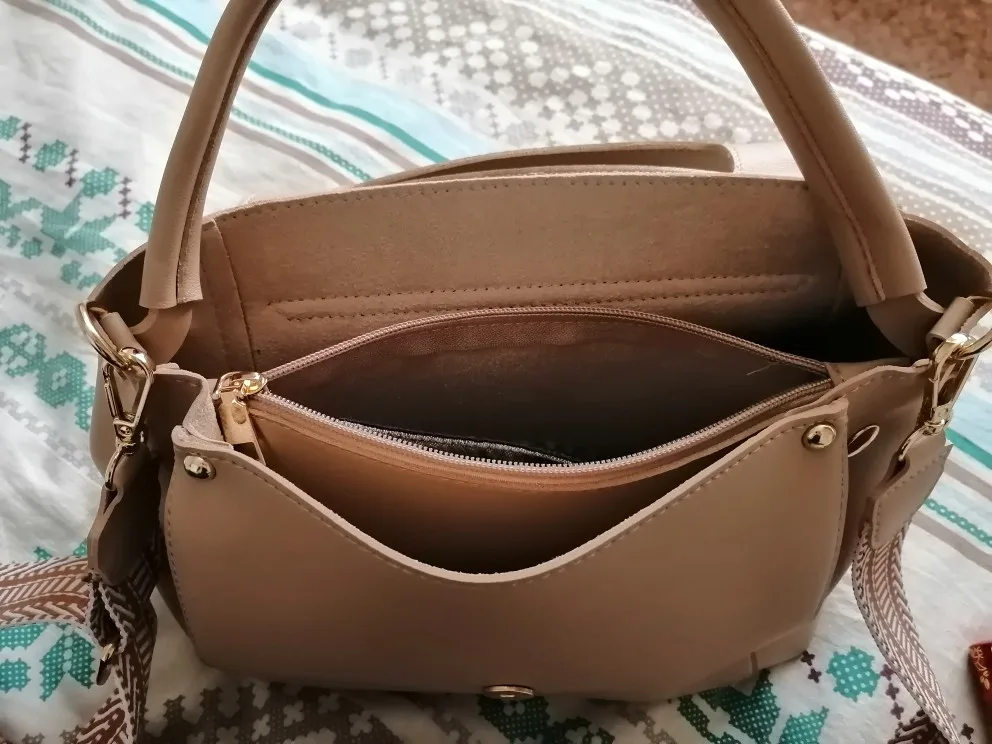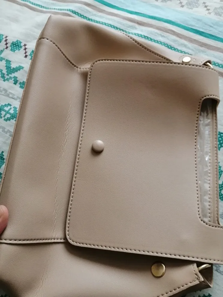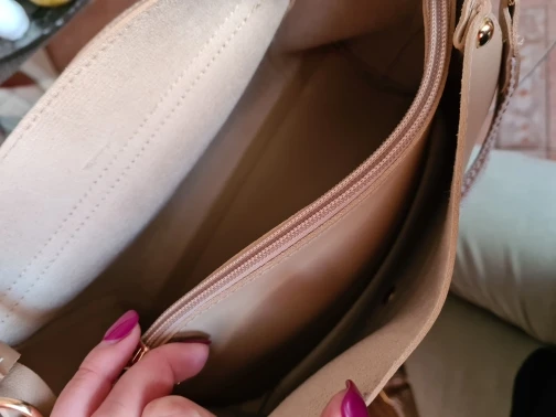 The bag is just super, the color is beige as in the photo, the seams do not stick out the belt cool, not a large size, but everything will fit into it! Odorless, for such a price just a bomb! In Peter came in 2 weeks, was well packed and in a pollen