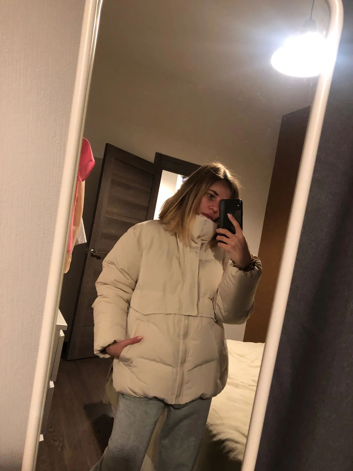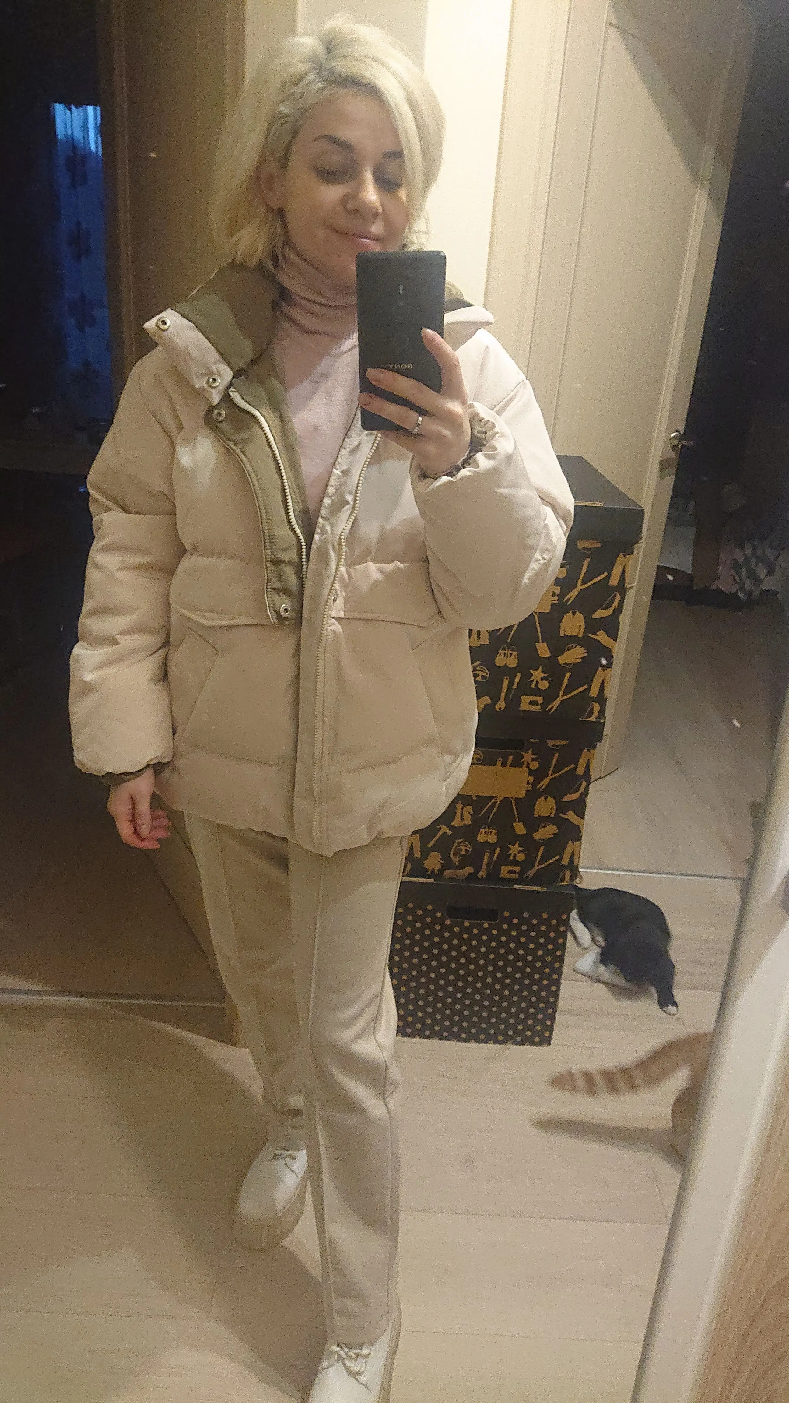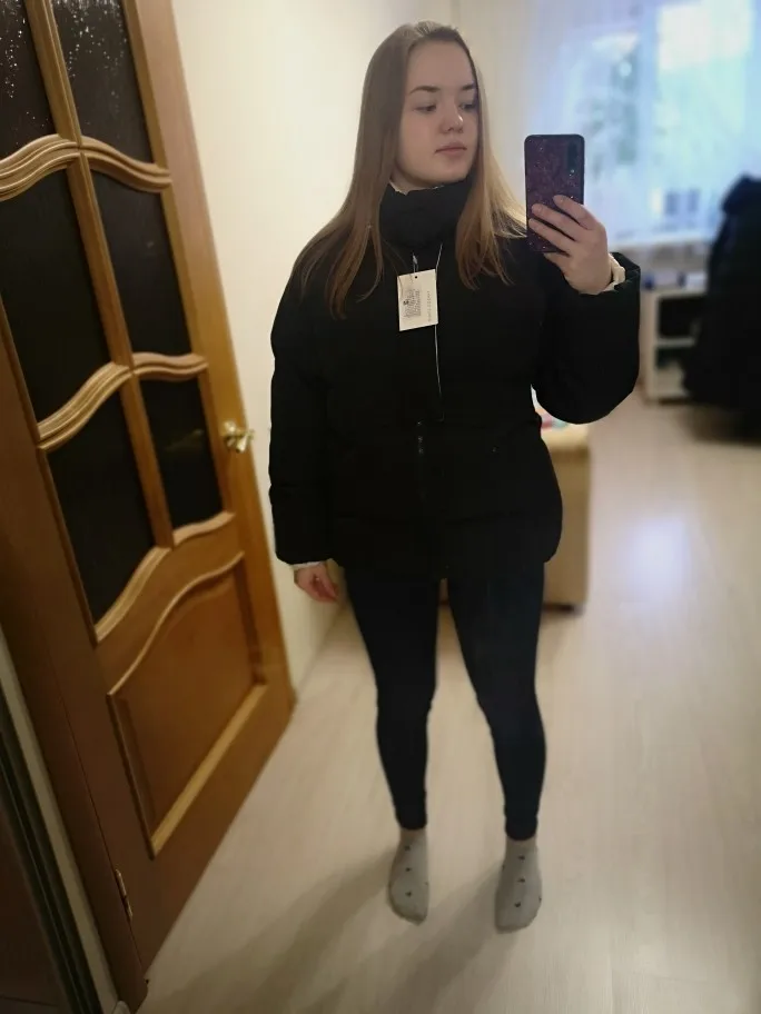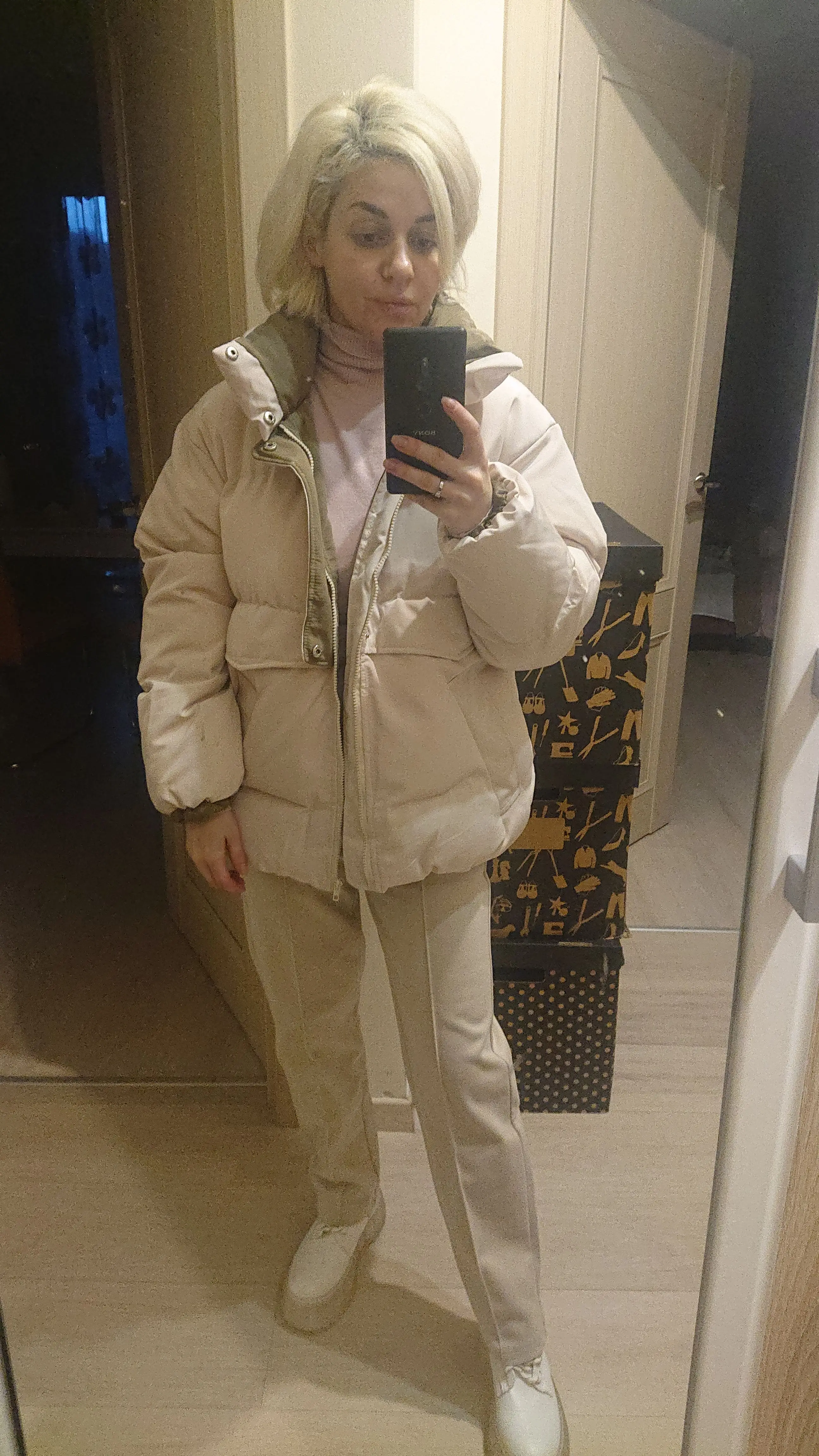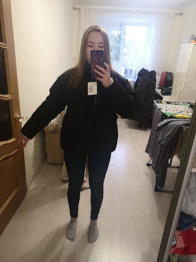 I took L for size 46-48, about 103. Happy with the purchase! I went perfectly, under it will still fit and a sweatshirt, and a sweater. Sleeves are also in size. Very beautiful color (as in the picture). To the touch is also very pleasant. Threads do not stick out anywhere, there is a little smell, but I think after the first wash will leave. I can not say the heat yet, but I think to-10. Will be OK. Peter got 12 days.