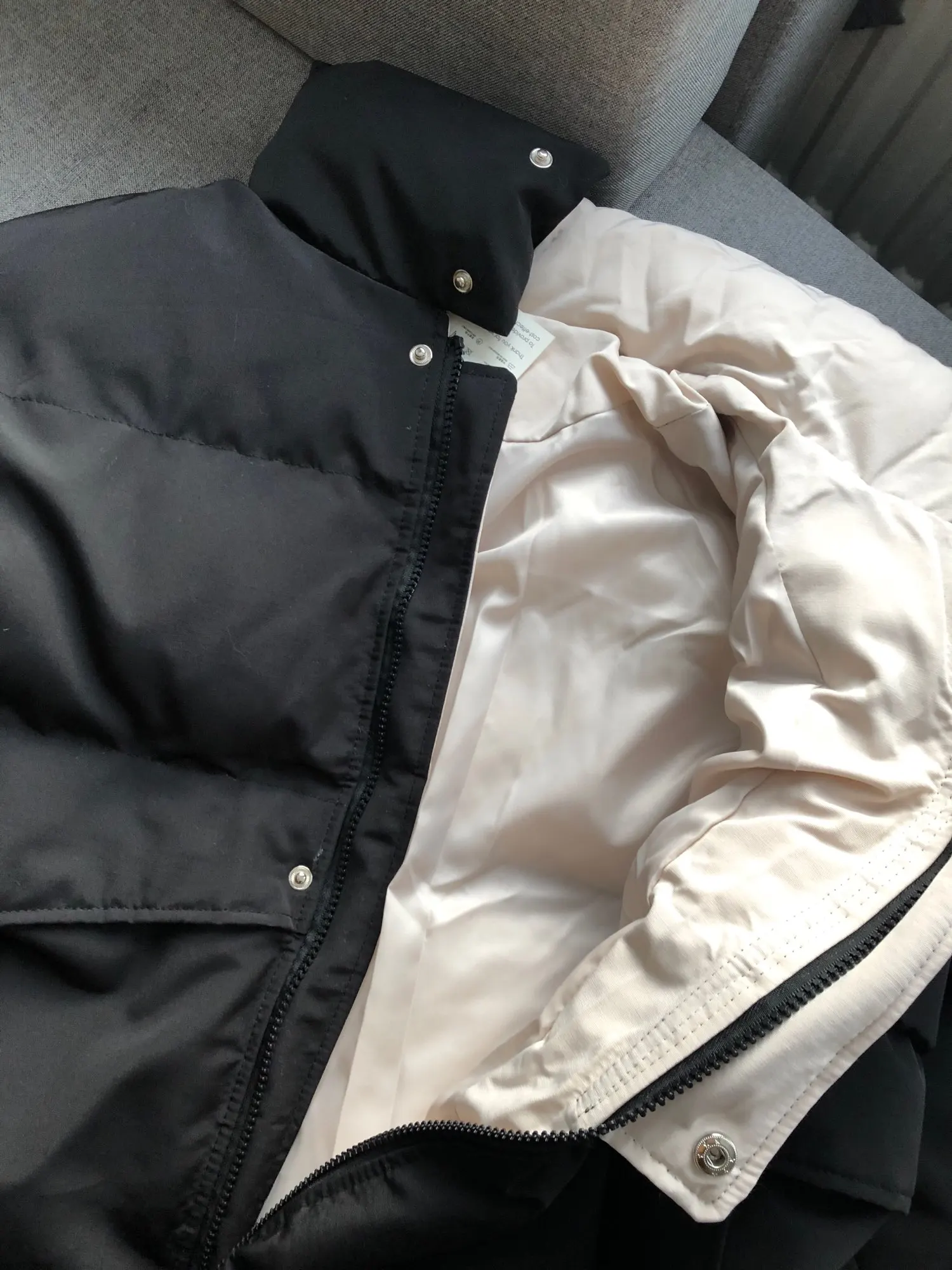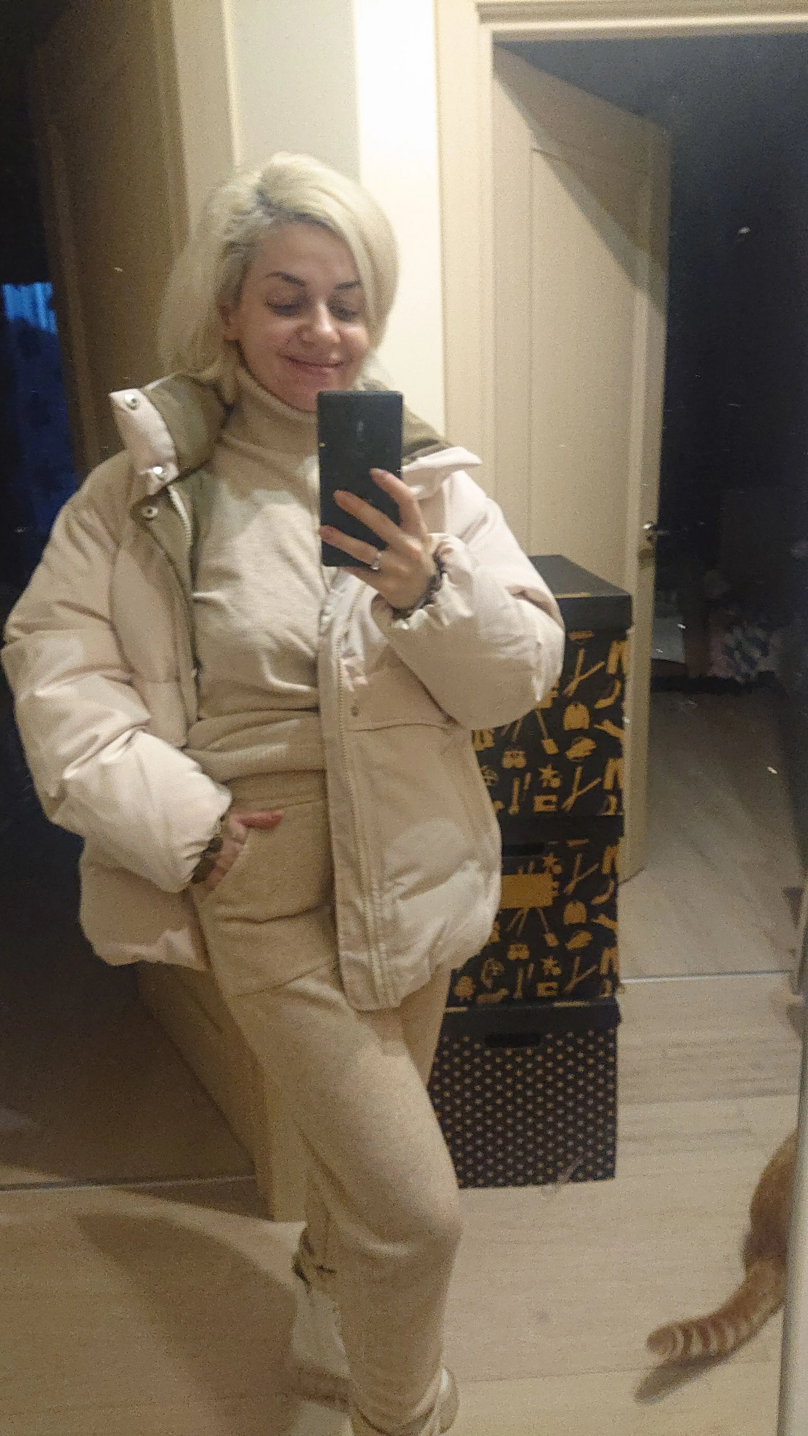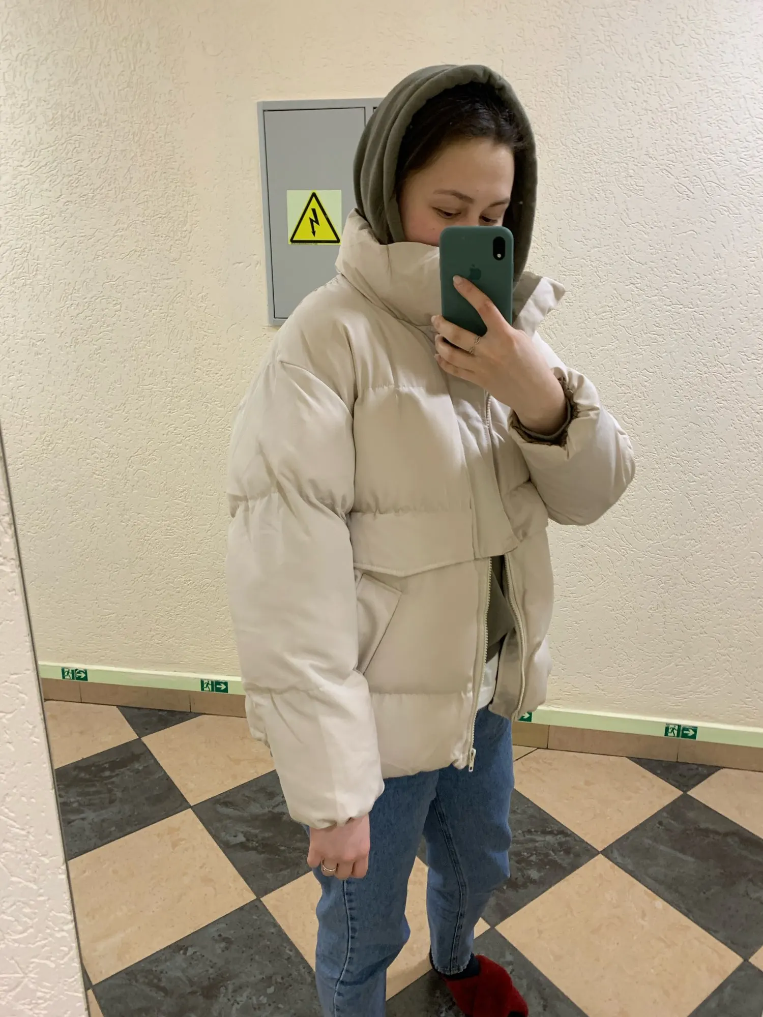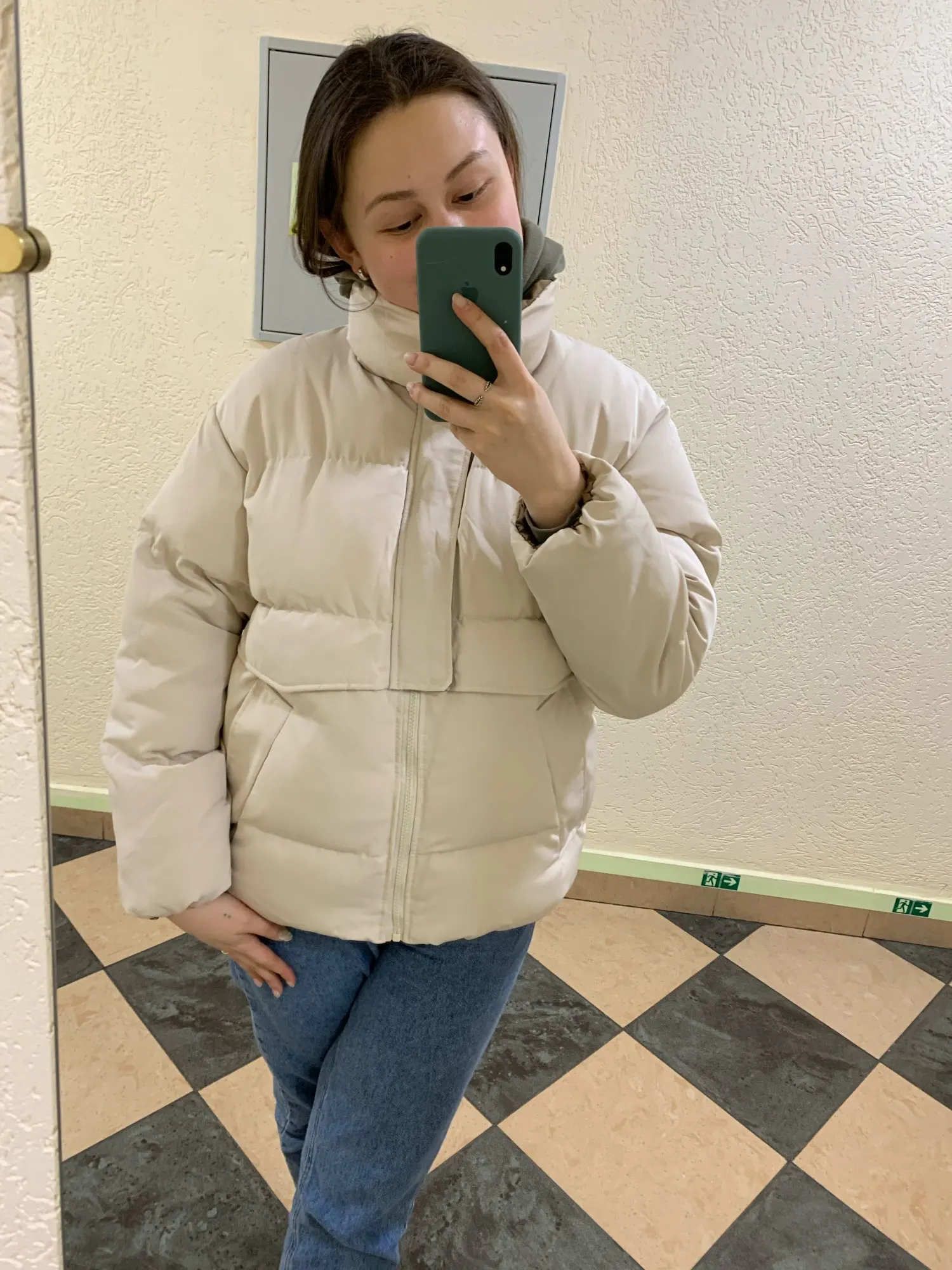 I took L for size 46-48, about 103. Happy with the purchase! I went perfectly, under it will still fit and a sweatshirt, and a sweater. Sleeves are also in size. Very beautiful color (as in the picture). To the touch is also very pleasant. Threads do not stick out anywhere, there is a little smell, but I think after the first wash will leave. I can not say the heat yet, but I think to-10. Will be OK. Peter got 12 days.
