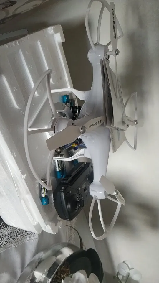 RC Drone Quadcopter with 4K HD Profesional Wide-Angle Aerial Photography Capable Camera. Long Life Remote Control Helicopter. Big Drone Product size: 42 * 34.5 * 15cm (protective ring) Battery capacity: 3.7V 3000mAh rechargeable battery Remote Battery: 4 * AA battery Charging time: 150 minutes Battery Lifetime: 25 minutes Remote control signal: 2.4 GHz Remote control distance: 200 meters Indicator light: 4 LED lights Highest image resolution: 4096 * 2160 Maximum video resolution: 1920 * 1080 Order contains: Battery * 1 Aeroplanes * 1 Remote control * 1 charging cable * 1 Screwdriver * 1 Instruction Manual * 1 Sheet * 2 Protection ring * 4 Function:Up / Down, forward / backward, left / right turn / left / right fly / high hover / 360 degree flip, headless mode / one-button return, speed adjustment / phone operation / voice / flight operation Track / video camera / emergency stop / electric adjustment camera