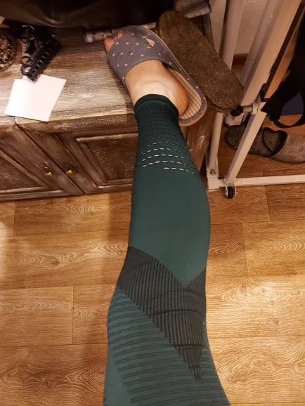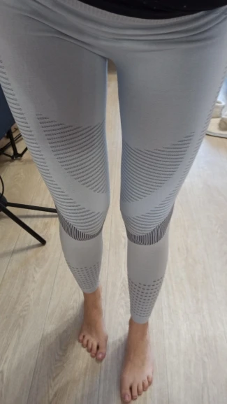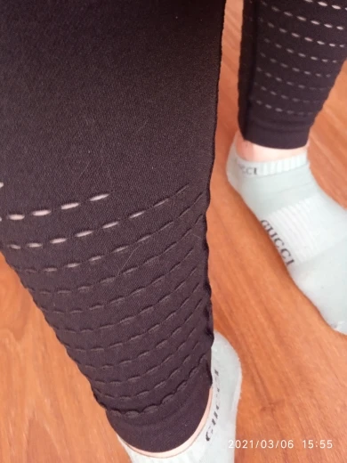 Leggings are very high quality. I bought s for the volume of the hips 88, waist 66. I put it on with difficulty, but I already got here. During training stretch perfectly. No pressure anywhere. Tighten and slim. The seams are flat, excellent. There is perforation on the shin. Due to the tightening and relief structure of the fabric on the hips there is a small effect of pressotherapy. They are not hot, although the fabric is dense.