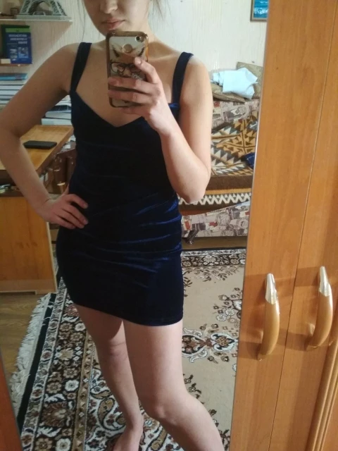 Very good dress for such a price. The fabric was dense enough, there was no smell, The seams are slightly even and the threads stick perfect, Provided for wearing without a bra. Strongly bullying when walking, I will be suitable only for photos. Maybe it was necessary to order a larger size. The dress stretches very well and fully fits. At 88-66-92 I ordered s. Surprisingly, it came very quickly.