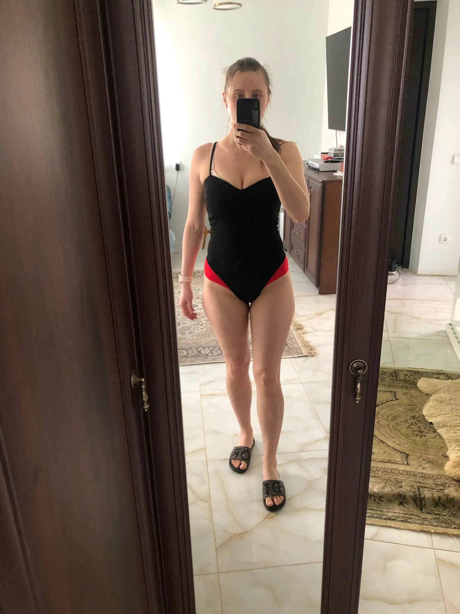 Amazing bodysuit. Much better look without underwear. I ordered L size but XL should be great. Thinking to order nude colour. I like material and style. Before ordering take a good mesuring.