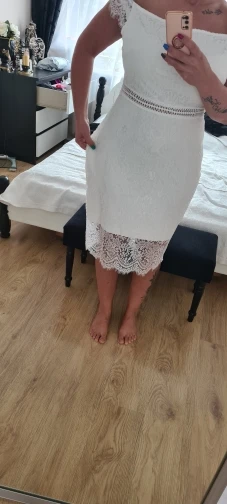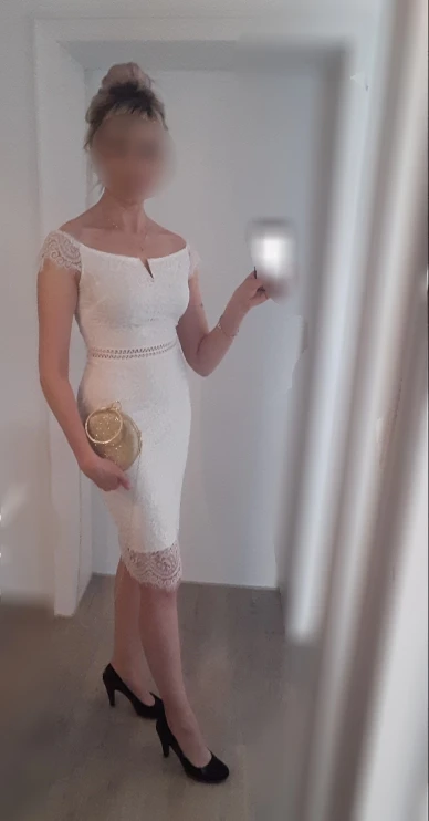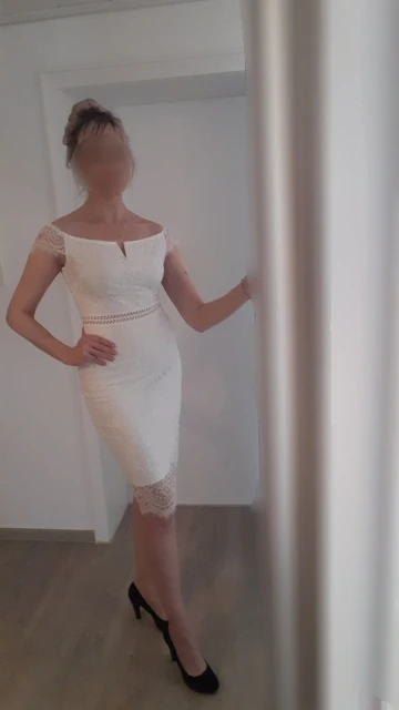 I got a very beautiful dress. White! Although I read reviews that it is beige and even yellow. On my 90-70-90, European 36 (Russian 42-44), height 173, weight 56 this dress "s" village effectively, because. Very much with very much the figure and as my dad said "blatnovato")). It looks cool, the zipper is fastened, you can even sit down, but it press and behind it, because the size should be more... Here the emotion would be ideal (or to lose weight a couple of kg). Does not shine through, but does not stretch very much. The shape of the throat cut opens the neckline very beautifully. Not much gives out for the combination of bryzhik on the shoulder and the bottom of the skirt. but I saw the photo and agreed to this. It came to Germany and was delivered on the track two weeks ago. Delivery in fact after these two weeks. Who's to blame? We don't know. Total, from the day of the order it was one and a half months (yes, normally)) I advise both the store and the dress.