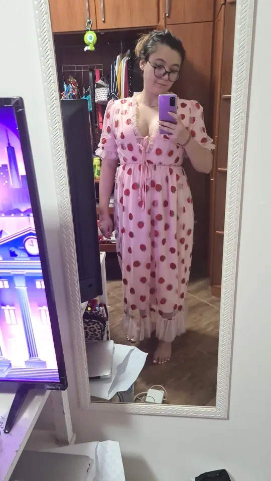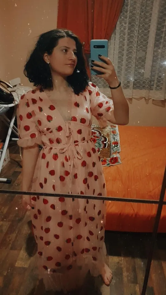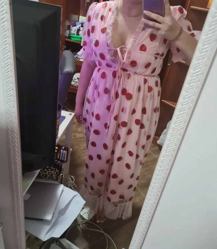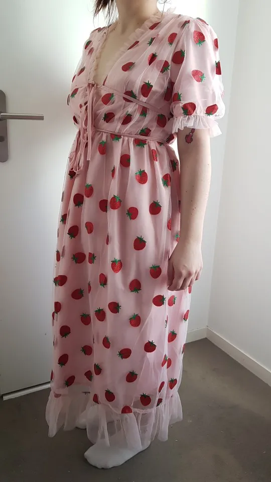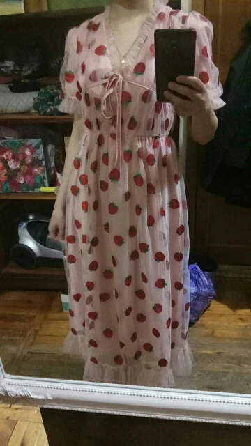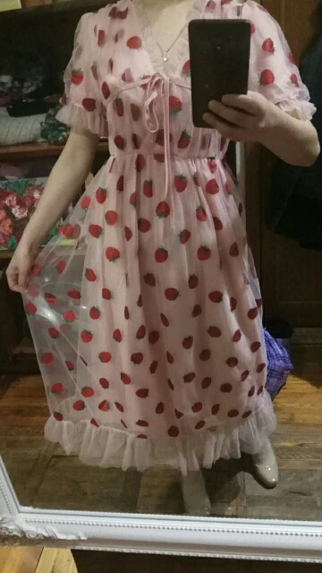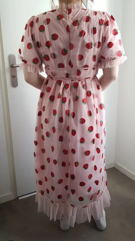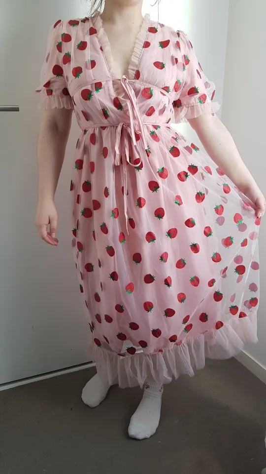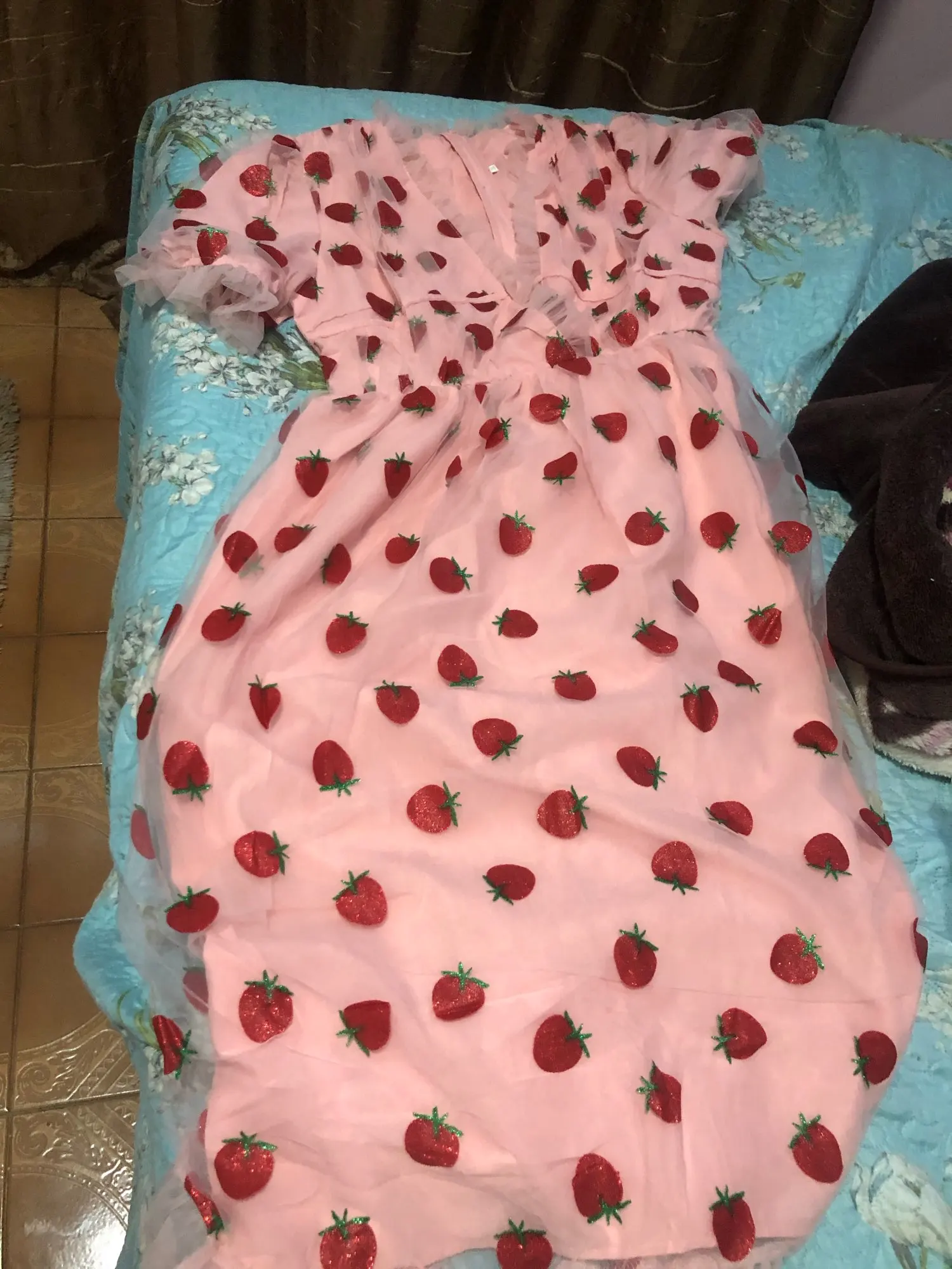 Prettiest Short-Sleeve Mid-Length Strawberry Dress Ideal for Parties and casual outings
