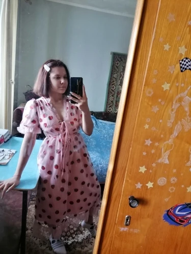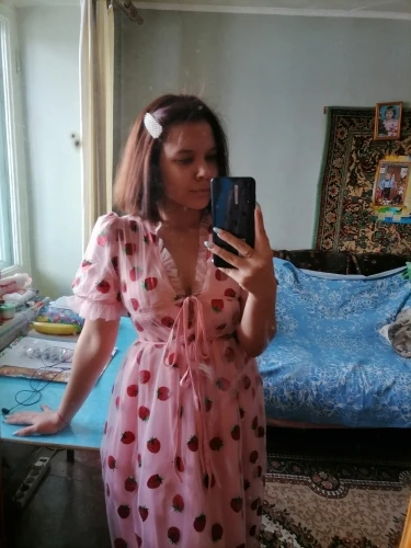 Slightly lost with the size, afraid that it will be small, took more, but in the end it turned out to be large in the chest, so I advise you to take straight your size. But the dress is still very satisfied. The height of 173 is excellent length, much lower than the knee, and in general the quality is excellent.
