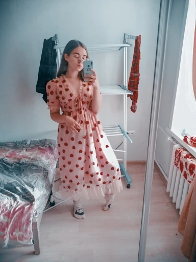 A beautiful dress, I liked everything. It came for about 2 months, for height 165, weight 50 took M, everything came perfectly.