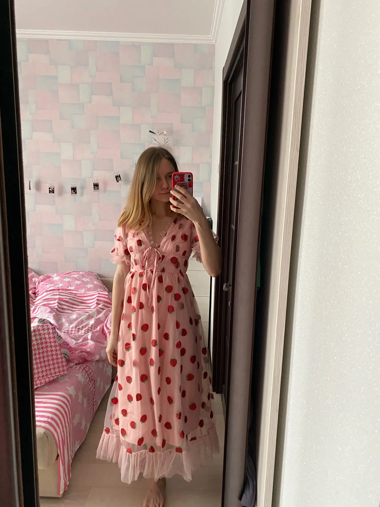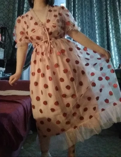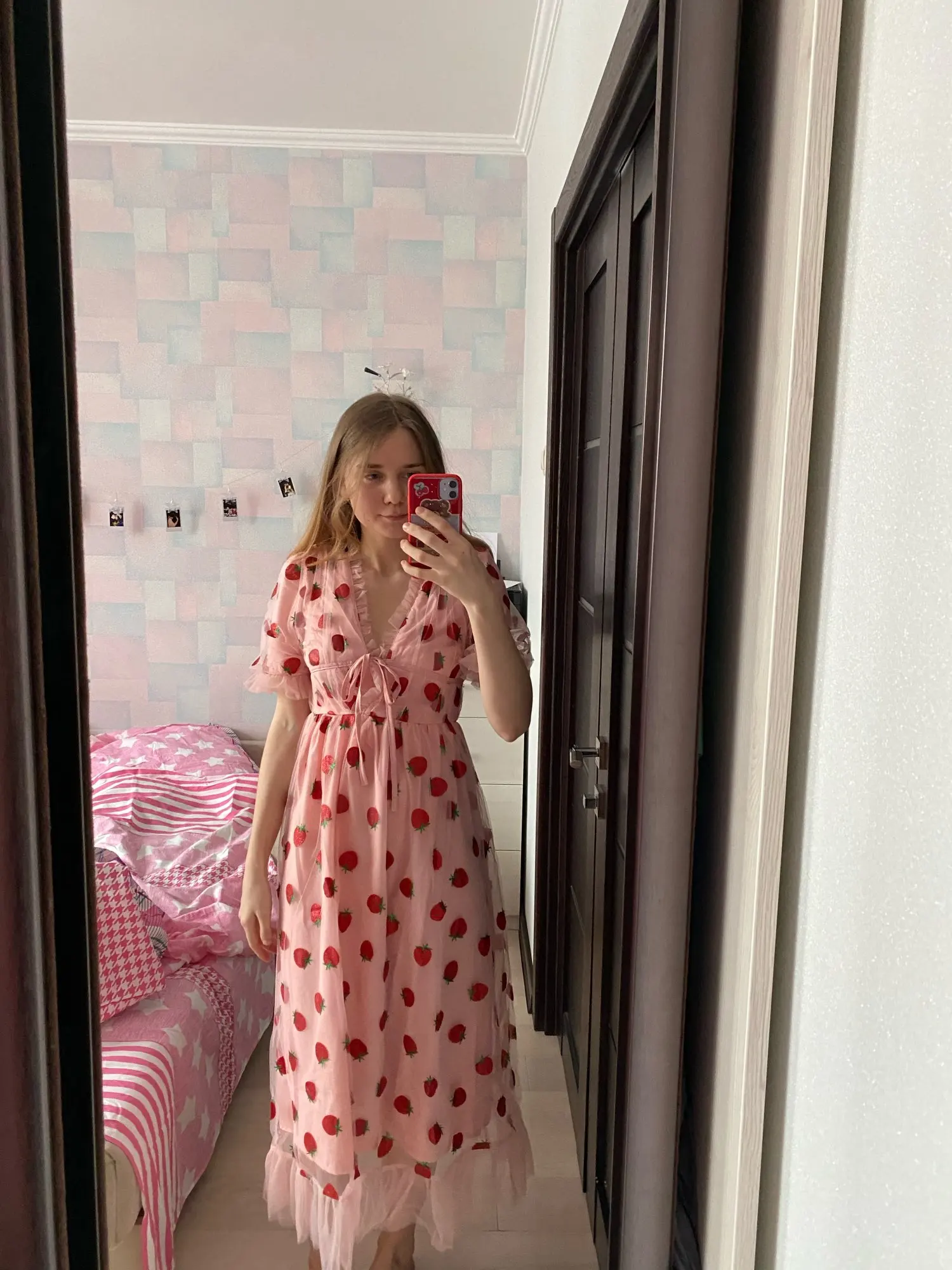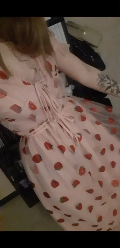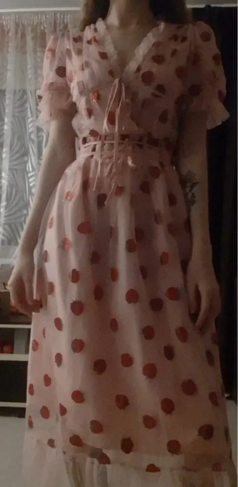 Prettiest Short-Sleeve Mid-Length Strawberry Dress Ideal for Parties and casual outings