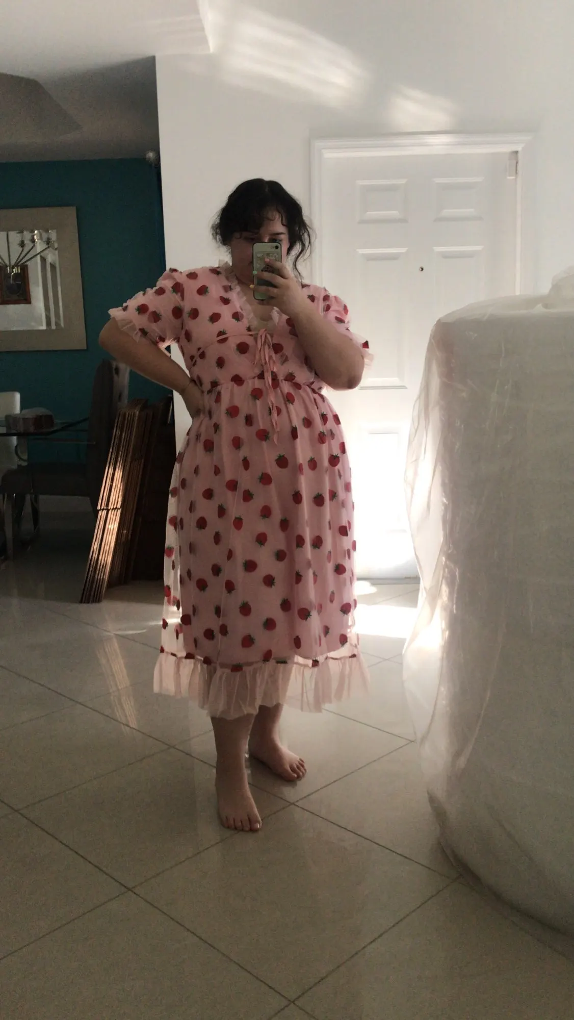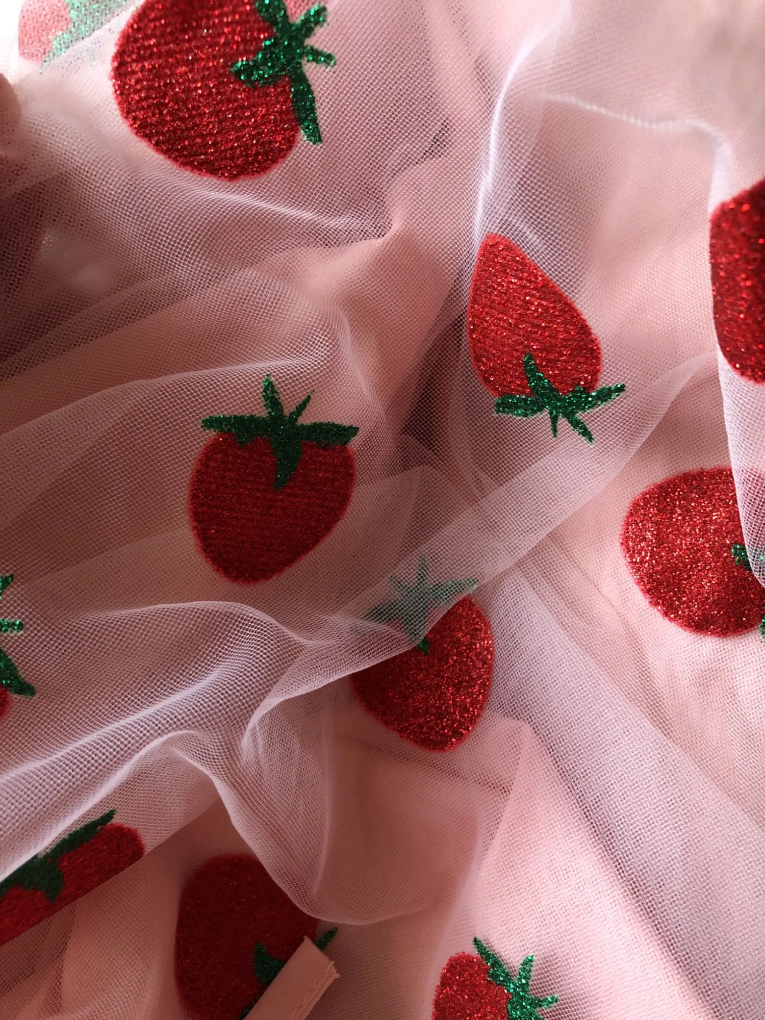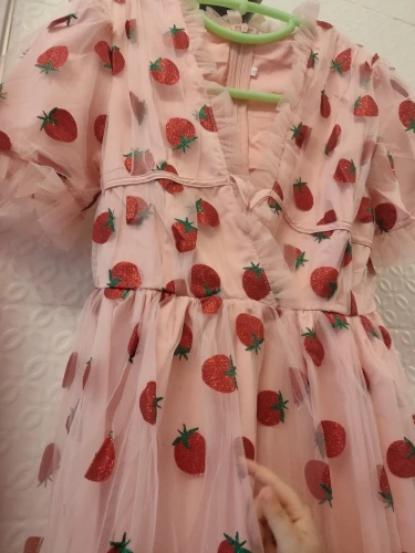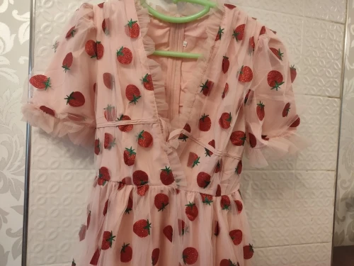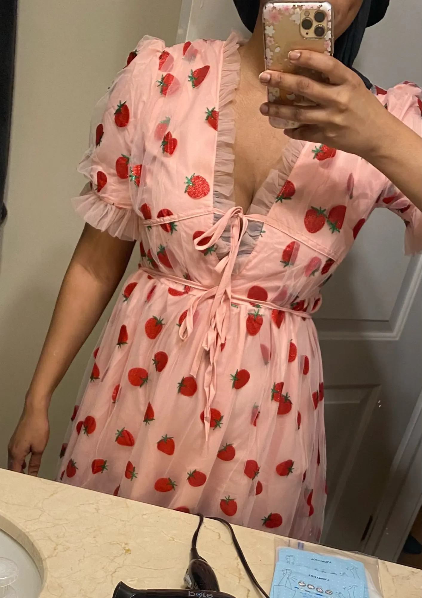 Prettiest Short-Sleeve Mid-Length Strawberry Dress Ideal for Parties and casual outings