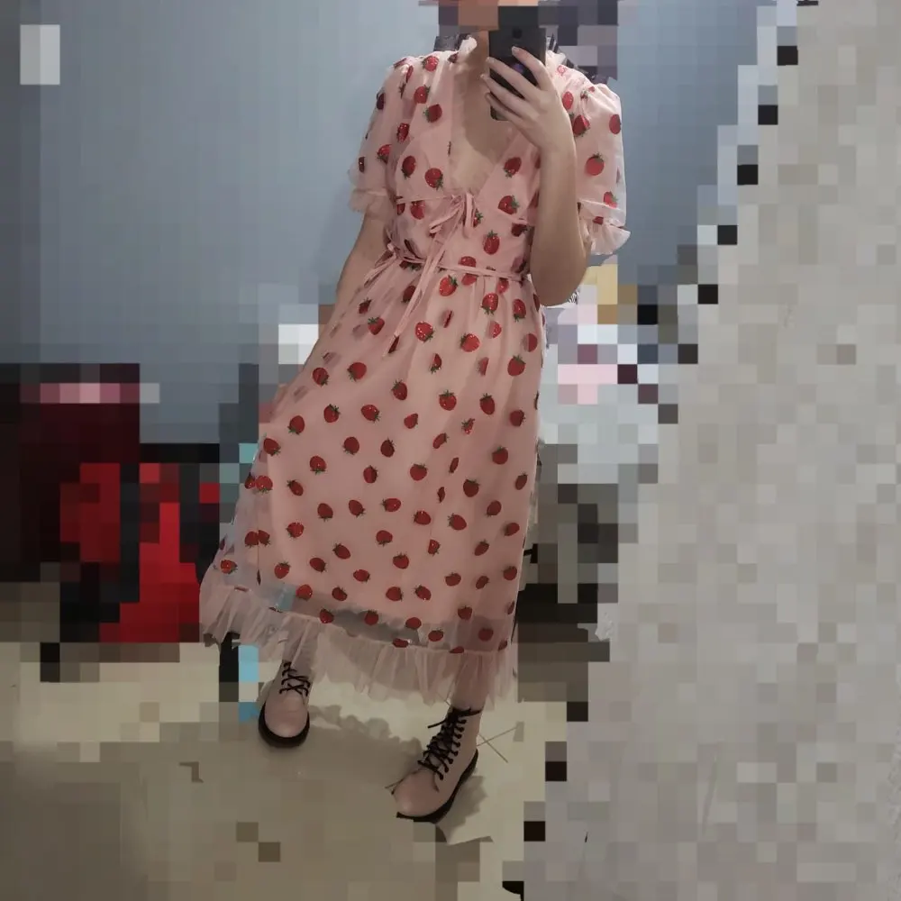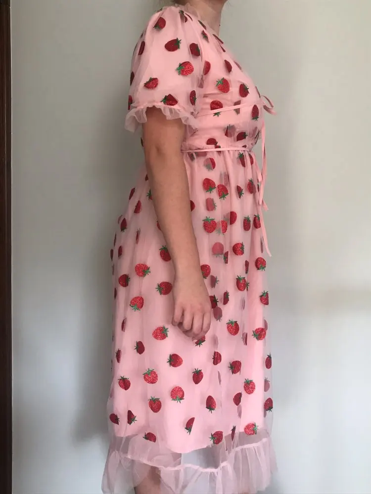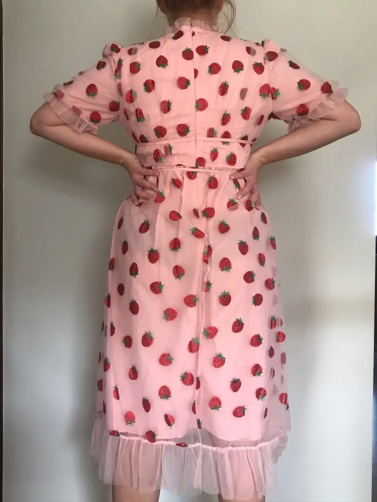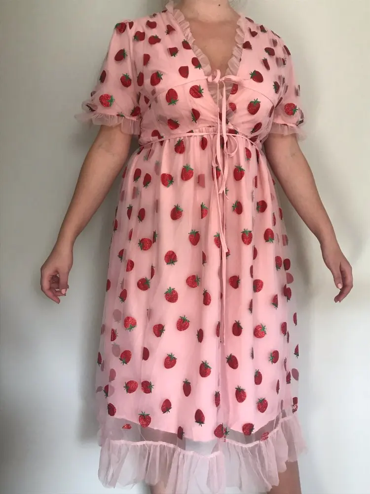 Prettiest Short-Sleeve Mid-Length Strawberry Dress Ideal for Parties and casual outings