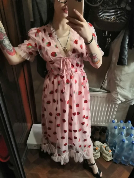 Dress is nice, quality is fine, looks just like on the pics. We weren’t expecting it to be that cool tbh but it’s really great, strawberries aren’t falling off and zippers are working. 3XL fits perfectly so sizing is accurate. We’re recommending it! It came quickly as well, so everything’s fine