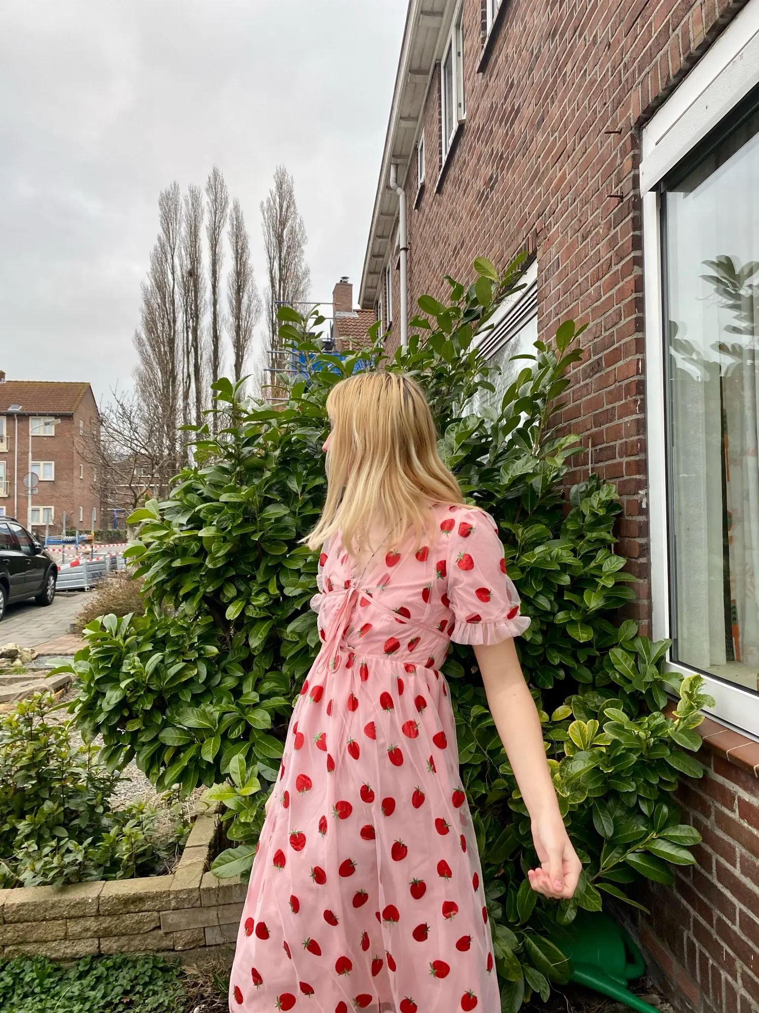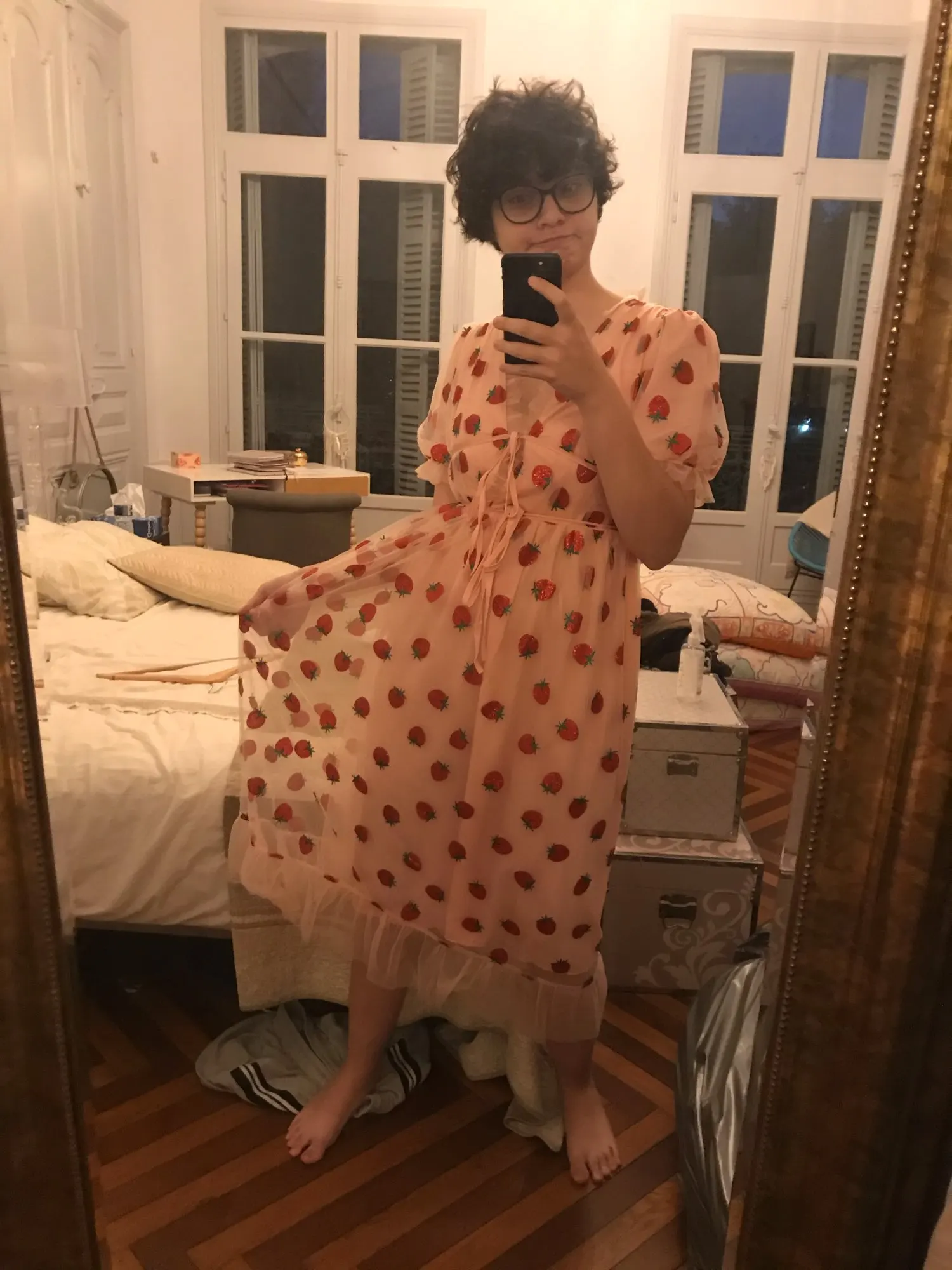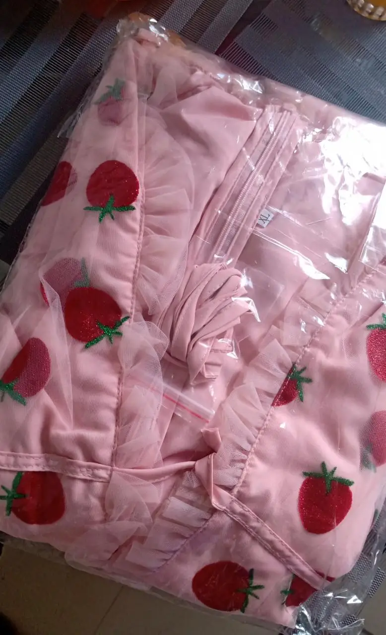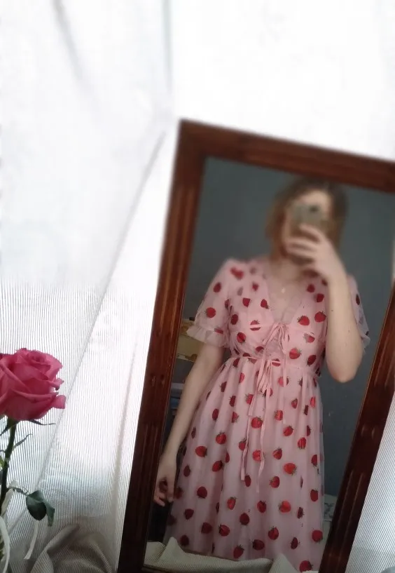 Super recommend, the dress is beautiful, delicate, lightweight and comfortable. Took 1 month and 6 days to arrive, had a delay in shipping package, because the holiday New Year Chinese happened, but nothing too. After it was sent, arrived in 15 days here in Brazil. The dress has two layers, a fabric pink and another one transparent rosy where are the strawberries, which by the way are very beautiful and bright. Along came also what I believe to be a reservation (?), only a complicating factor to put and take the dress without help, the zipper is very big, but is very good MSM.