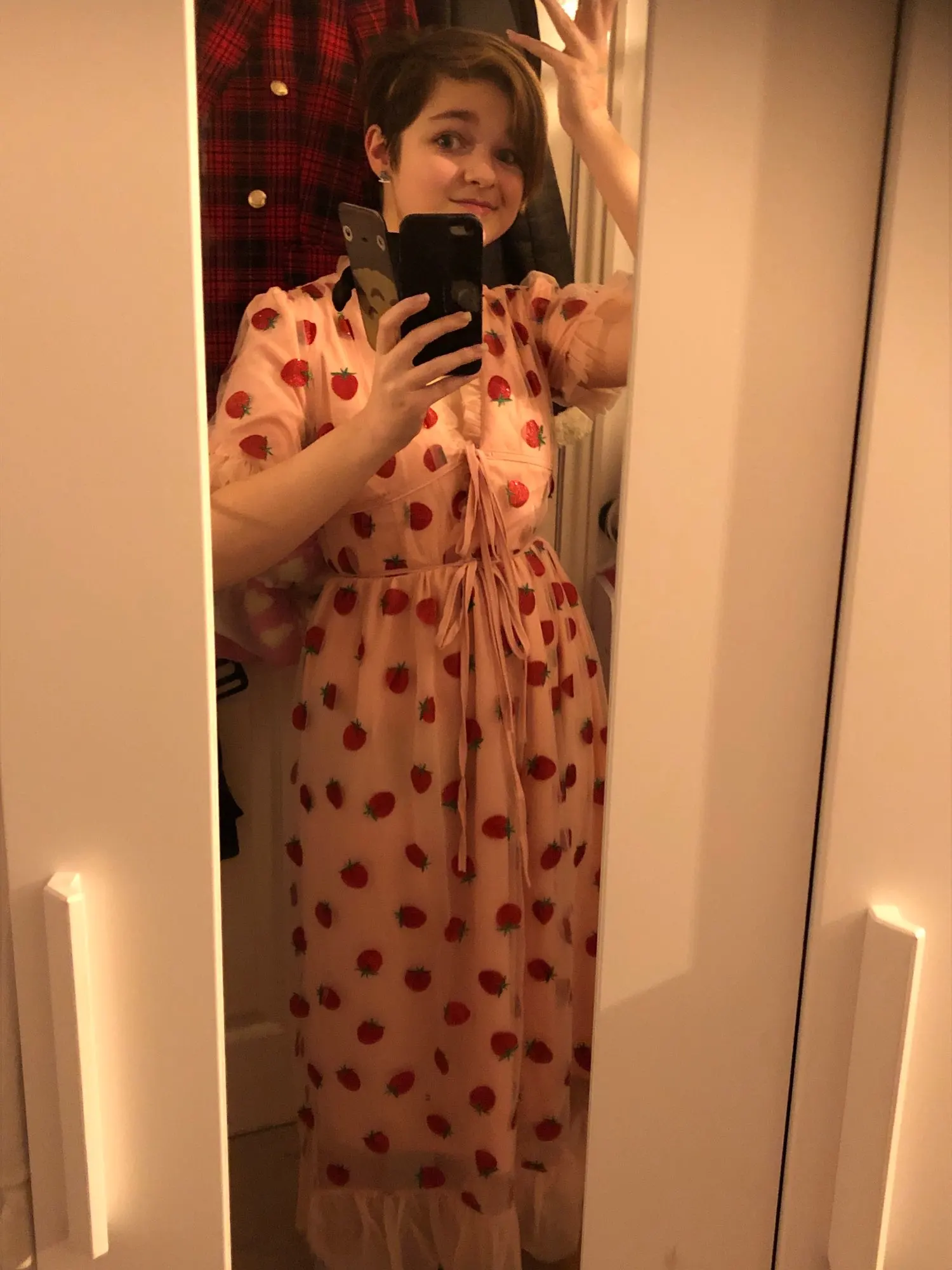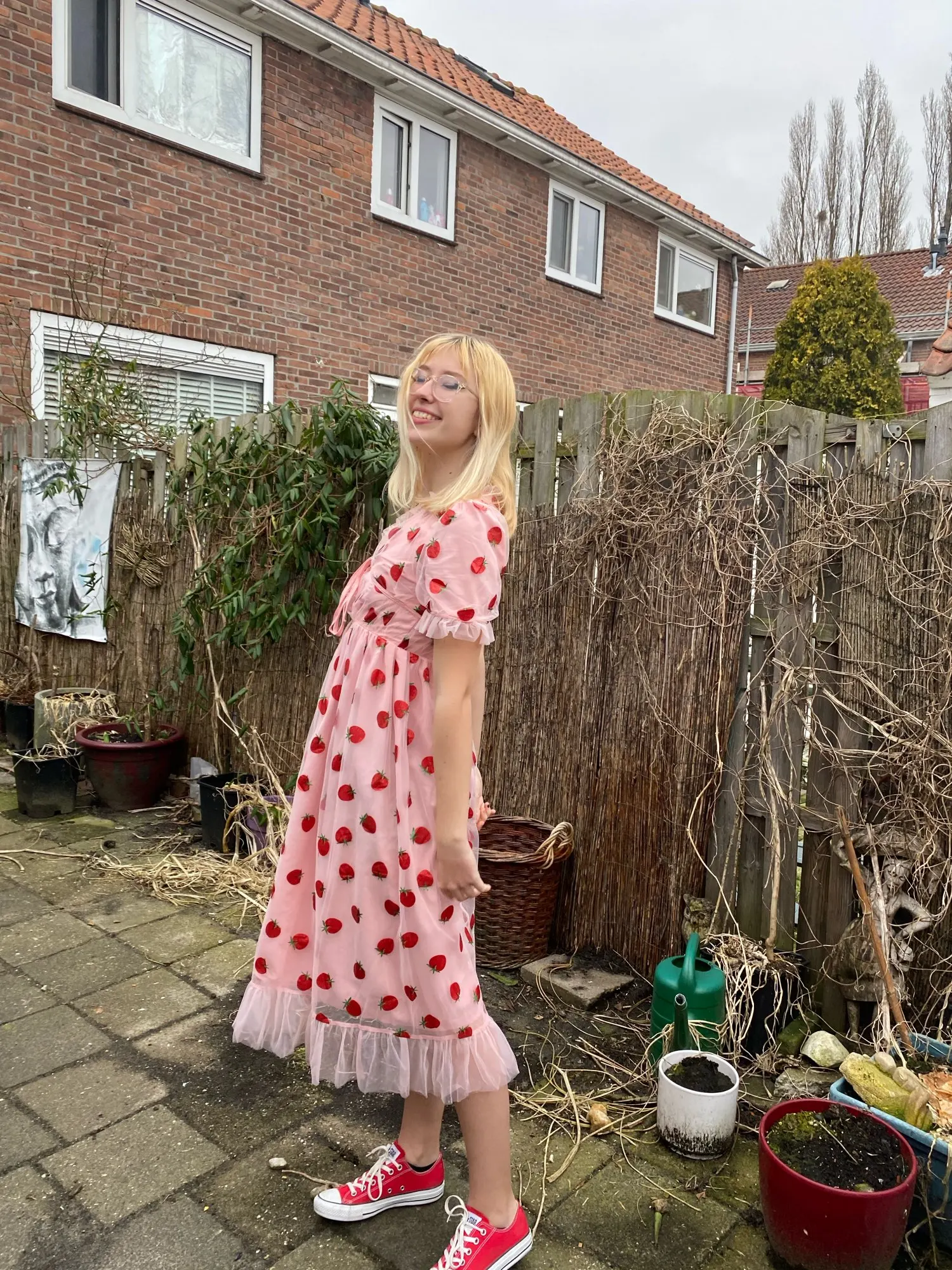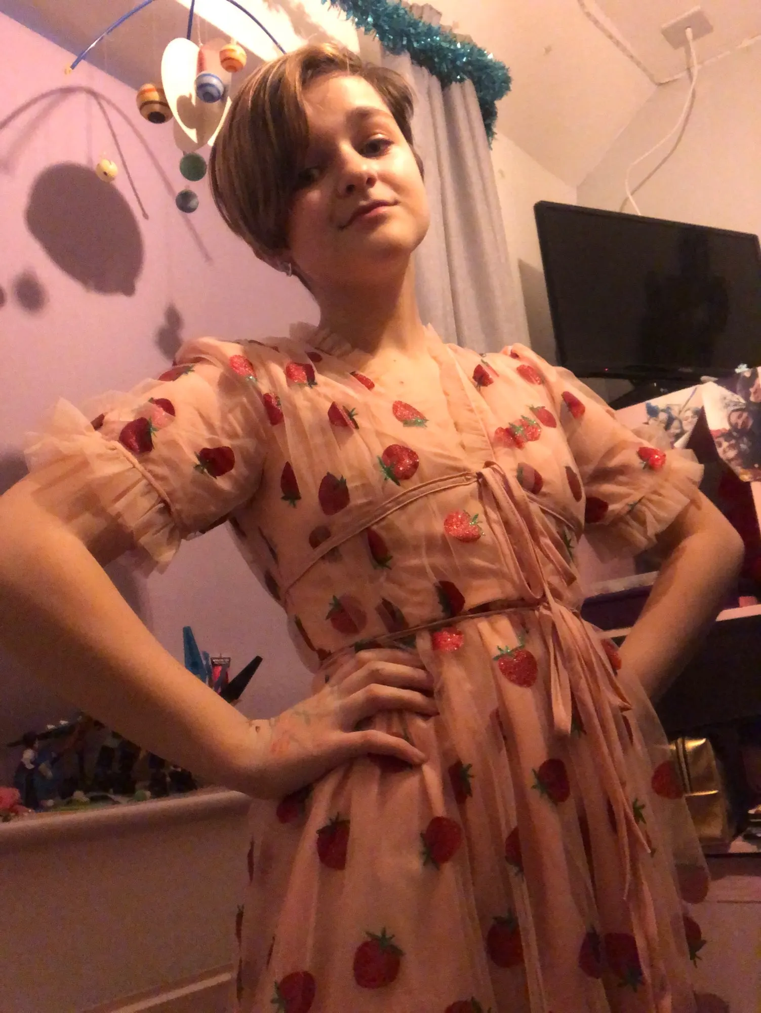 Super recommend, the dress is beautiful, delicate, lightweight and comfortable. Took 1 month and 6 days to arrive, had a delay in shipping package, because the holiday New Year Chinese happened, but nothing too. After it was sent, arrived in 15 days here in Brazil. The dress has two layers, a fabric pink and another one transparent rosy where are the strawberries, which by the way are very beautiful and bright. Along came also what I believe to be a reservation (?), only a complicating factor to put and take the dress without help, the zipper is very big, but is very good MSM.