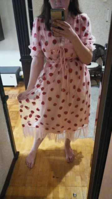 The dress is very beautiful and pleasant to the touch, the size approached. In general, very satisfied with the purchase
