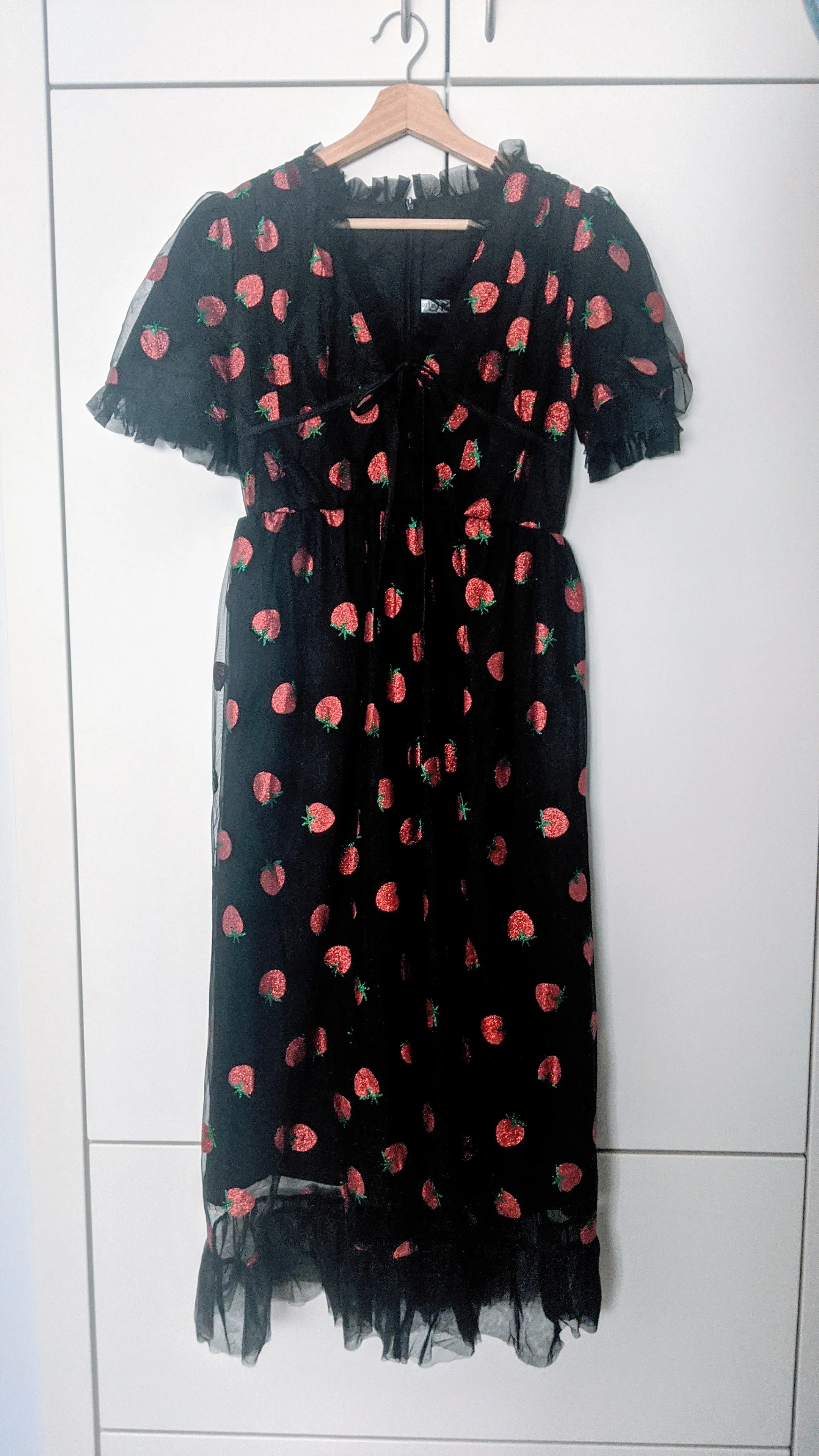 Prettiest Short-Sleeve Mid-Length Strawberry Dress Ideal for Parties and casual outings