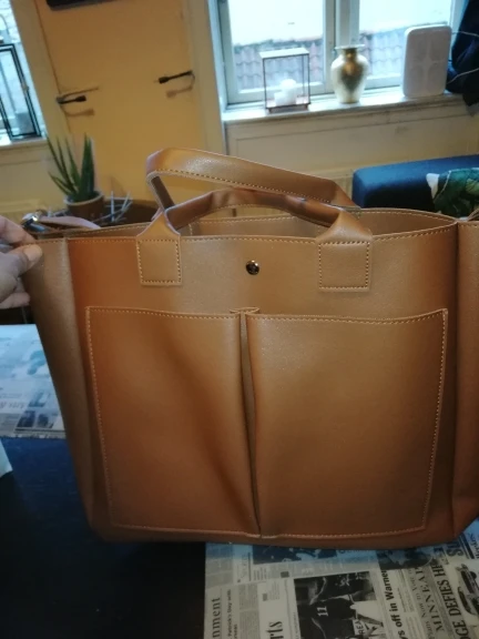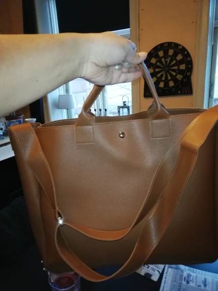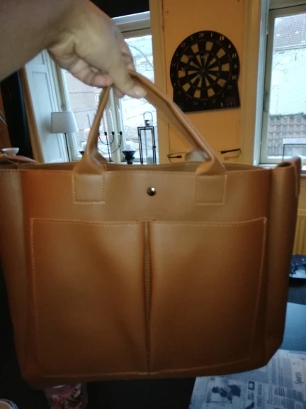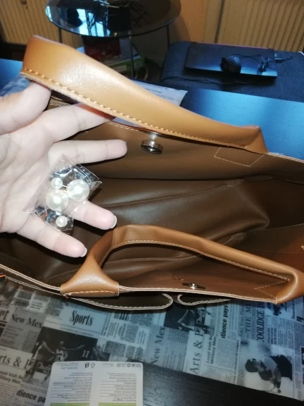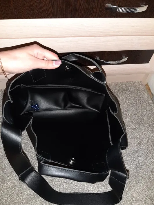 Great bag! It arrived well-packed, with inflated bags inside so it wouldn't lose its shape. Well sewn, the shape is large enough, with short and long handles. There are no compartments or pockets inside the bag. There are two pockets on the front of the bag. Good quality, no smell. Fast shipping - I ordered it on 22.12.2020, arrived on 14.01.2021. I am very pleased. There was also a small gift - earrings. Thanks to the store. I recommend
