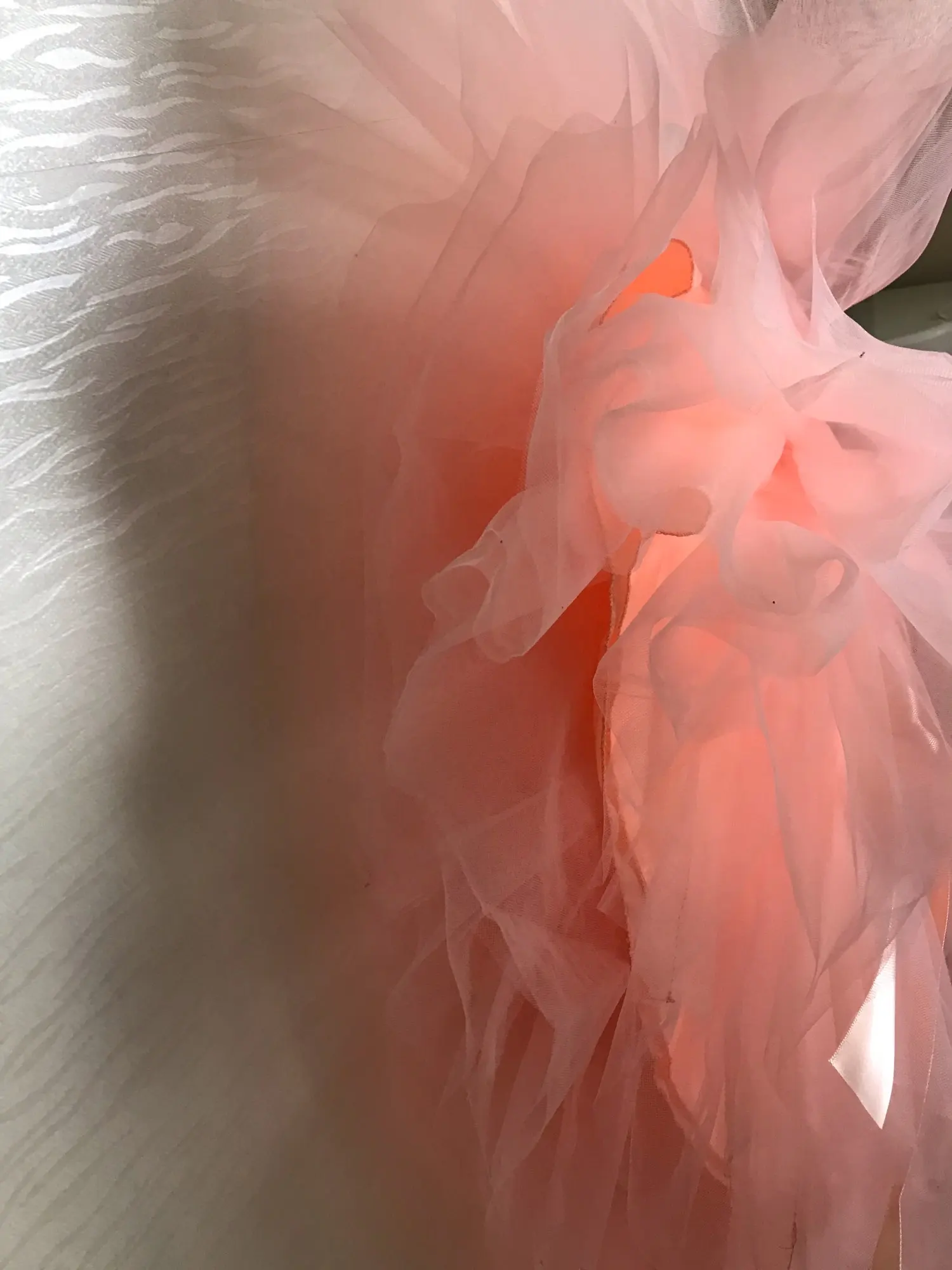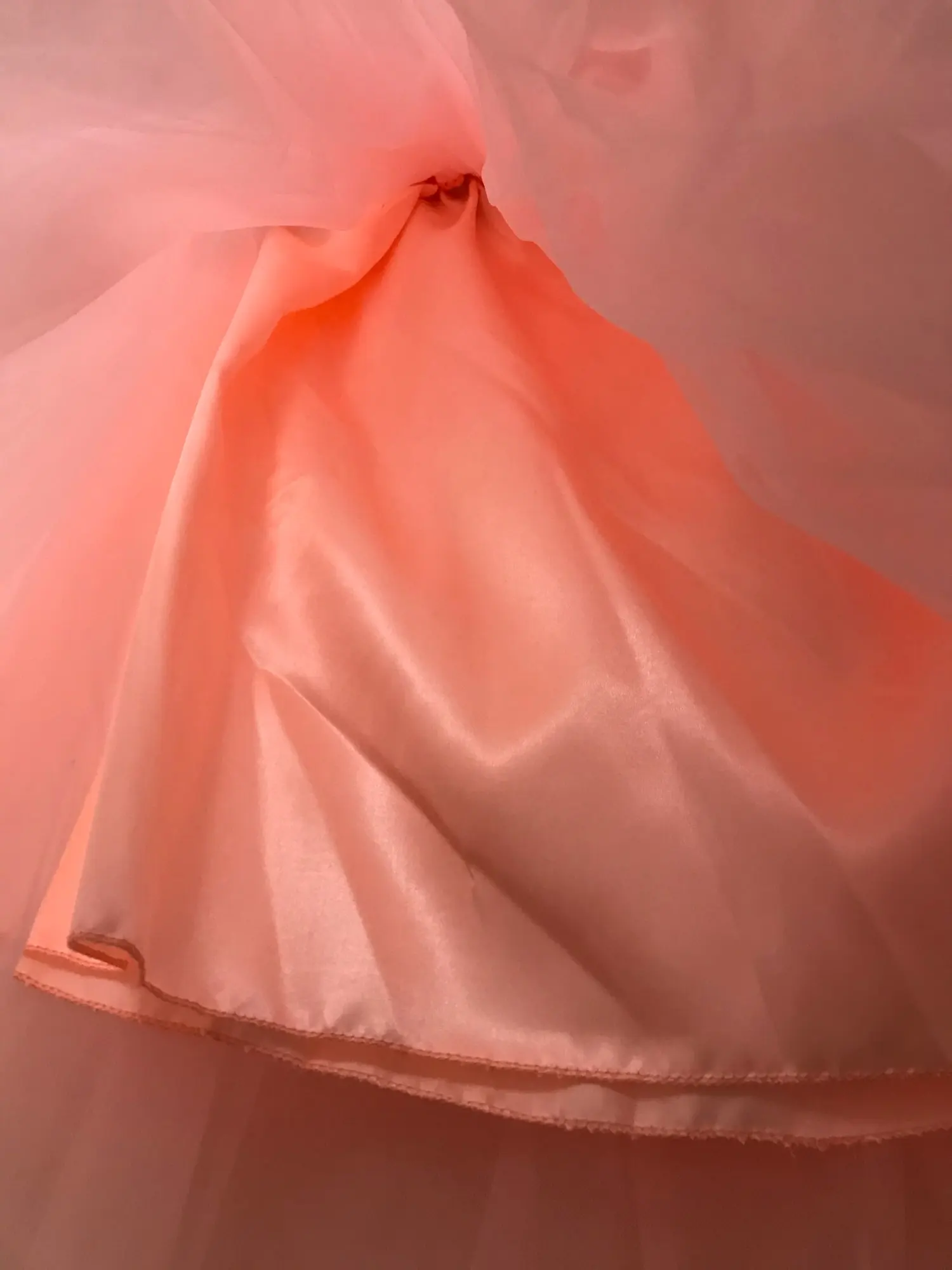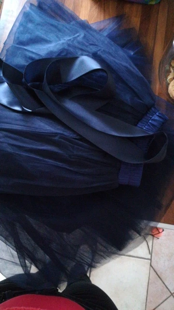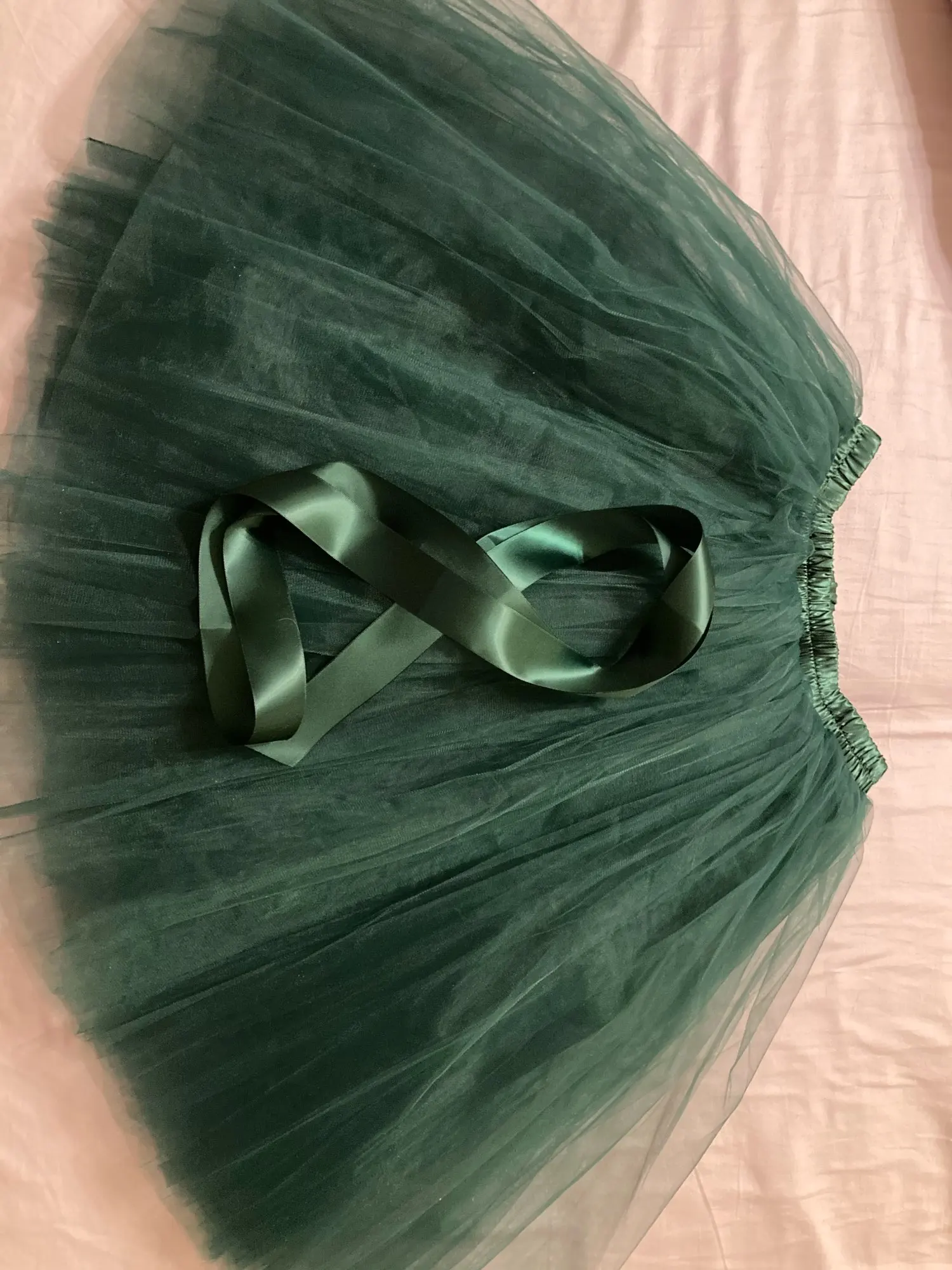 The skirt came in time specified by the store. Fully corresponds to the description. The lowest layer of dark green satin, and on top of 5 layers of tulle-so nothing shines through))) it is attached to the satin ribbon. The skirt is lush and airy! Thank you.