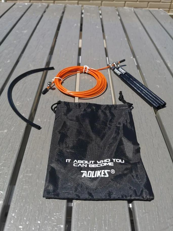 Skipping Rope With Carrying Bag Specifications: Material: Aluminum handle Color:  6 color options+ 5color options with bold handle Rope Length:3m Handle Length: 14cm Item Weight: 140g Package included: 1 x Speed Jump Rope 1 x Carry Bag 1 x wear tube