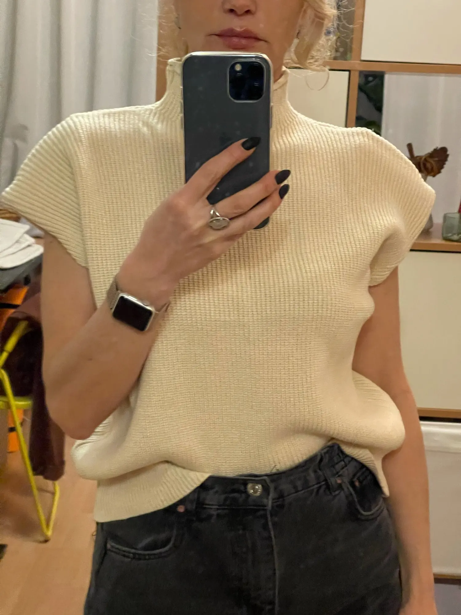 This stylish sleeveless turtleneck vest is now available for a great price! Get it now!