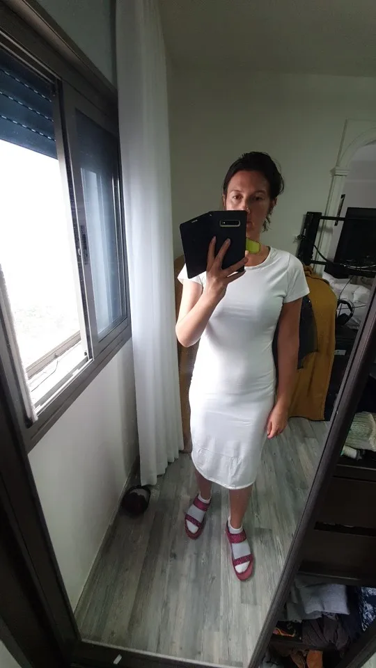 I really liked the dress, simple base, the fabric is dense, does not shine through, length to the knee for height 169, but from movement of course bullies higher) at OG 88 size S Butt, in general, at 42 size ok, but I have a big chest and I would like a little freer. But judging by the reviews, the size of M could be too big, so in general everything came up.