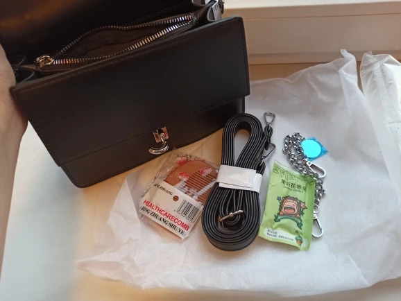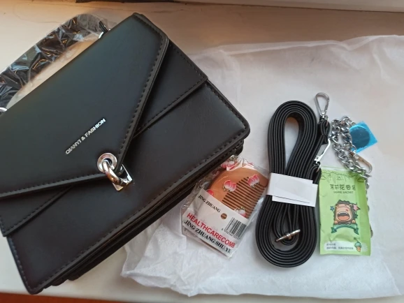This bag is the best parcel with Ali. She came to me in just three days and a courier! Packed in box, bag bag, and paper inside, looks super, in the kit a long strap and a chain, they can be removed at will, photo will not pass all the beauty and quality of the goods, I will order more! A pleasant bonus is a comb as a gift
